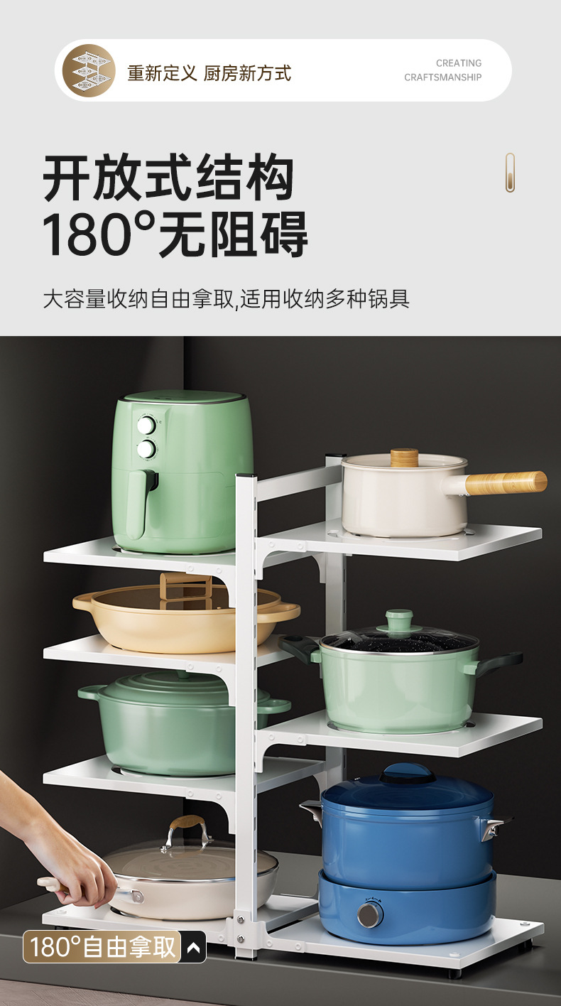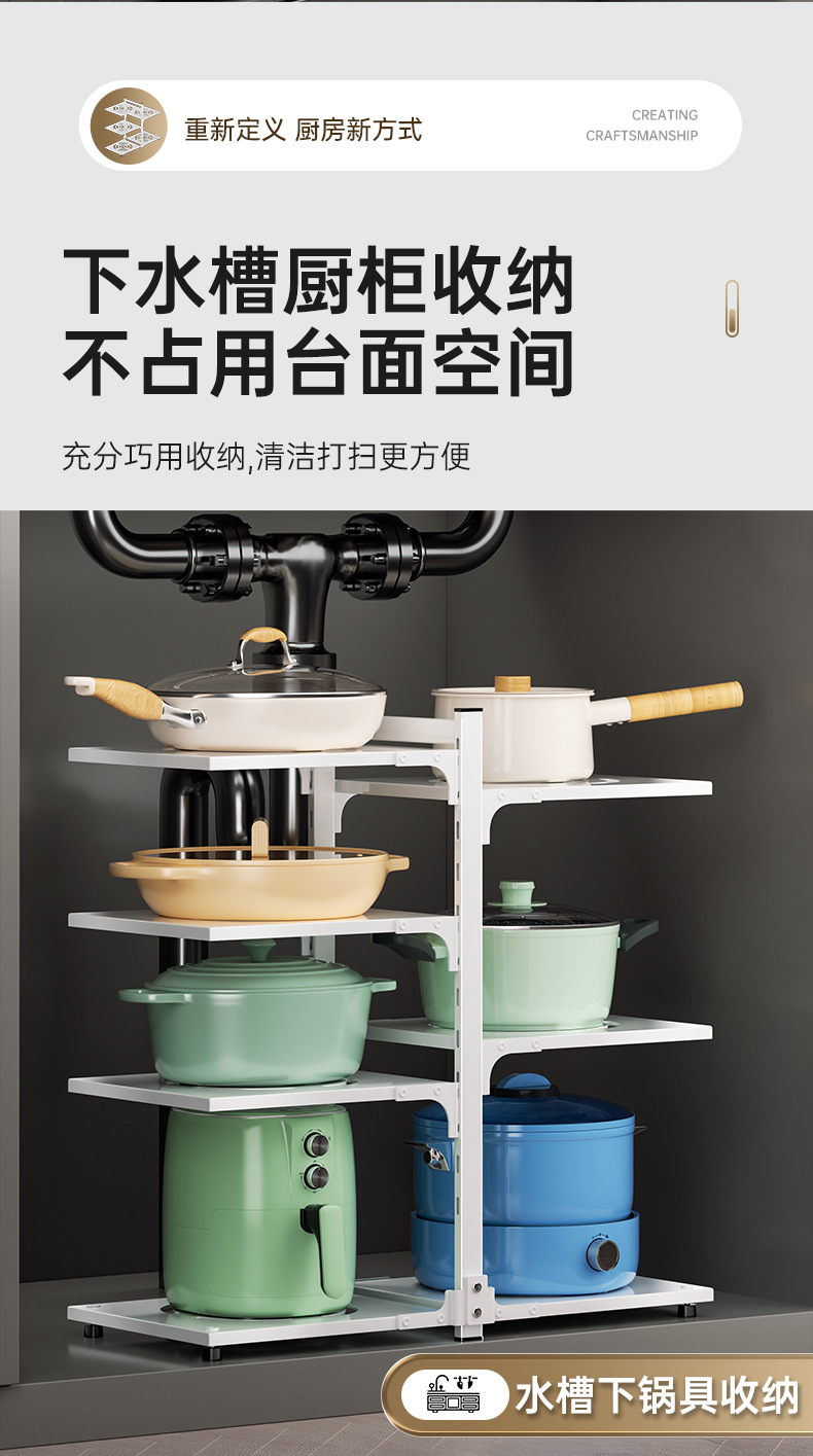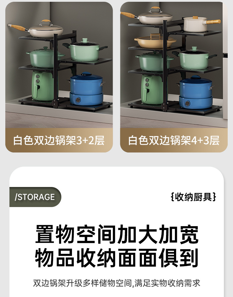 주방 스토리지 랙 바닥 다층 냄비 랙 캐비닛 레이어드 하단 싱크 냄비 보관 다기능 스토리지 랙