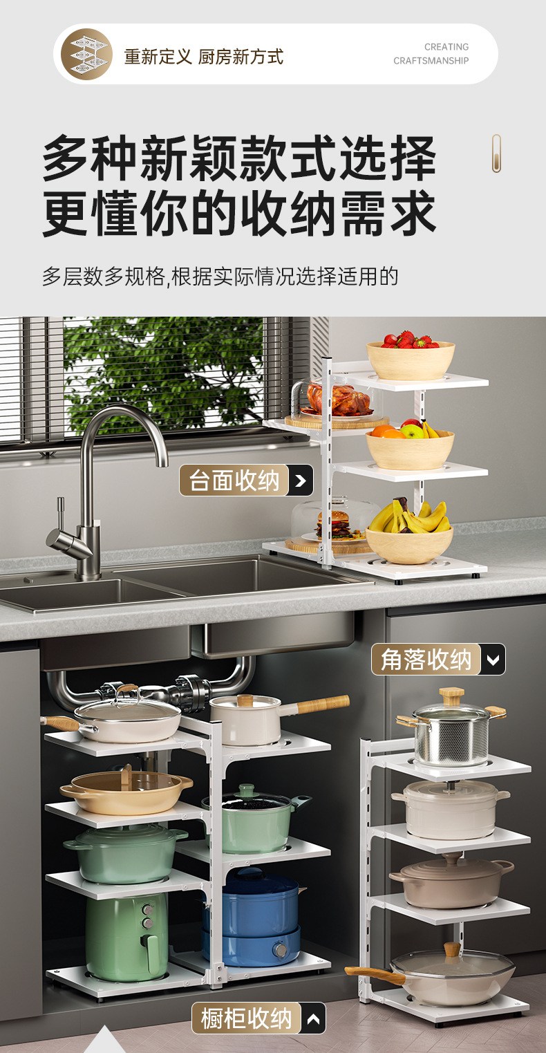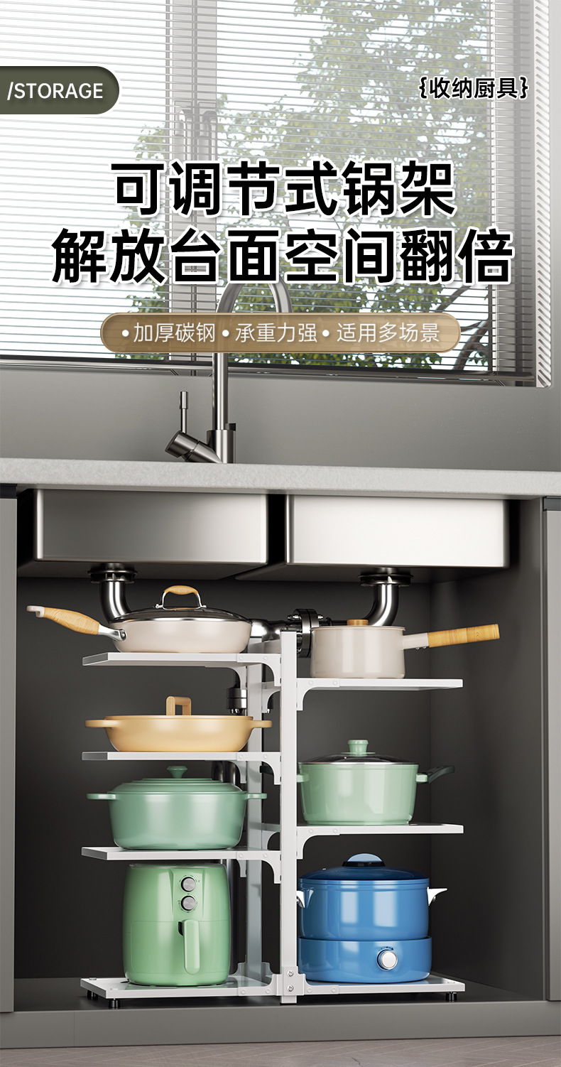 주방 스토리지 랙 바닥 다층 냄비 랙 캐비닛 레이어드 하단 싱크 냄비 보관 다기능 스토리지 랙스토어 가기