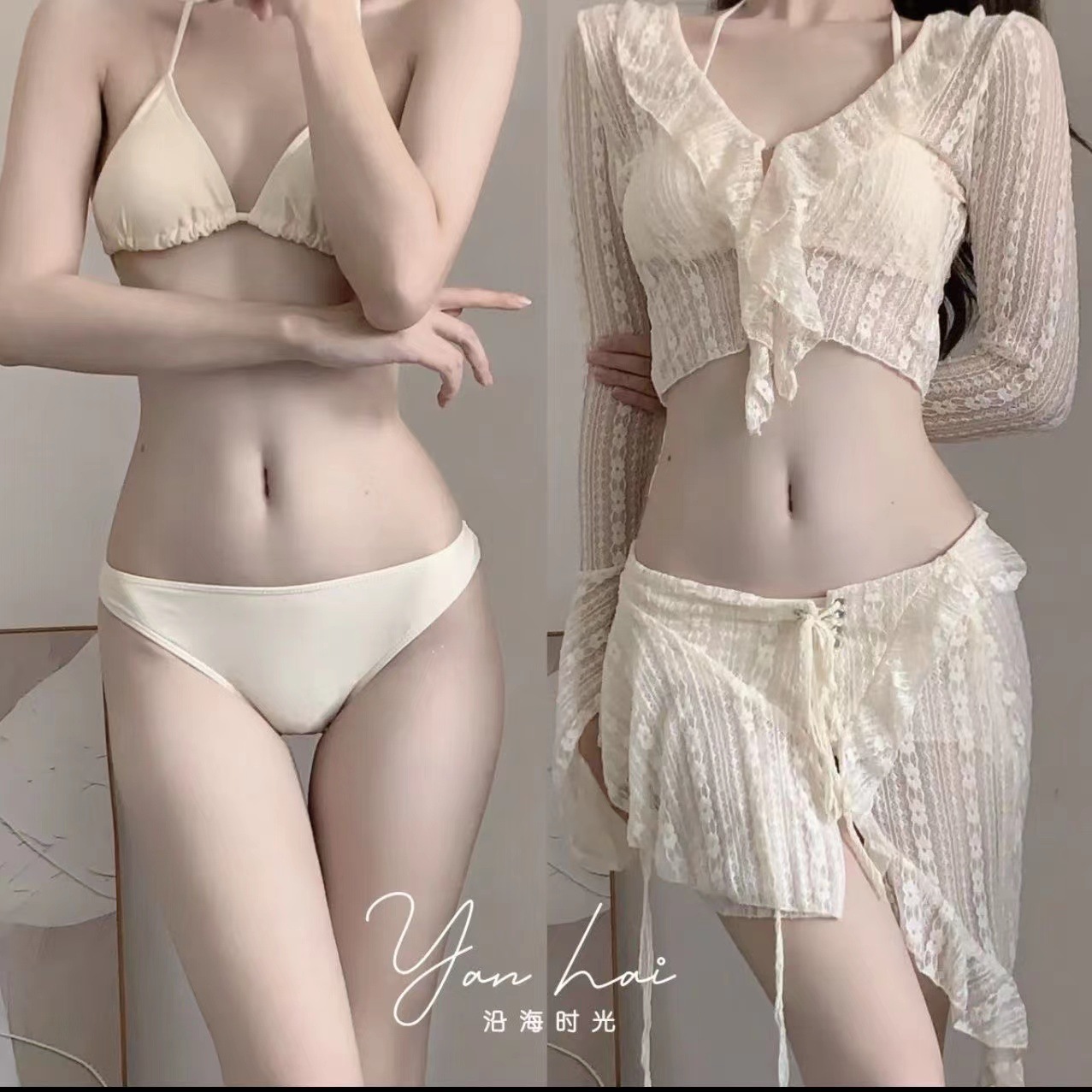 밀크쿨 바비 휴가복 세트 레이스 스트랩 작은 가슴을 위한 허리 슬리밍 온천 수영복 여성용 4피스 비키니스토어 가기