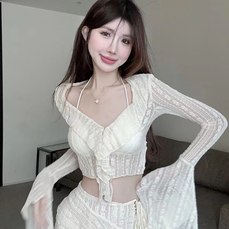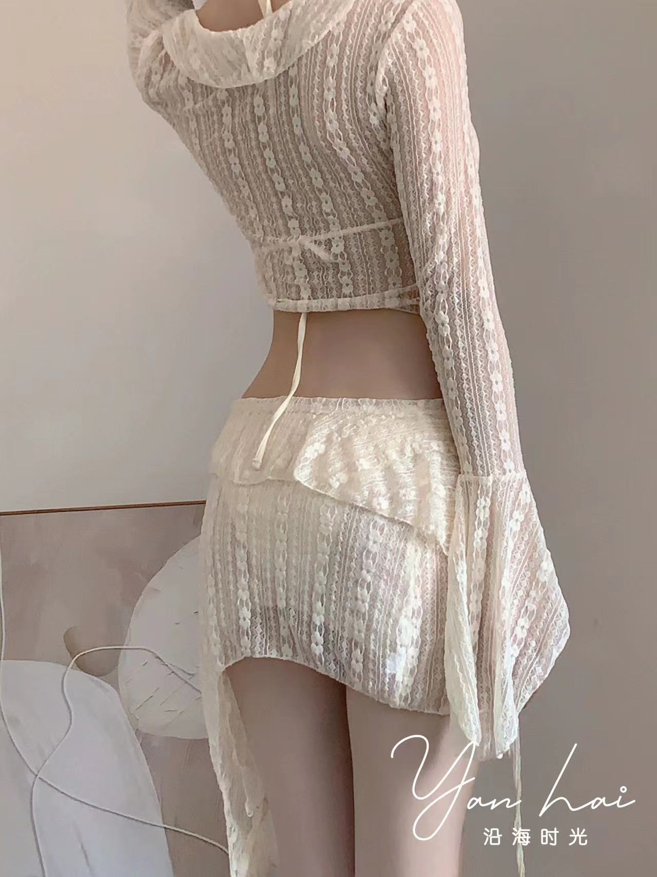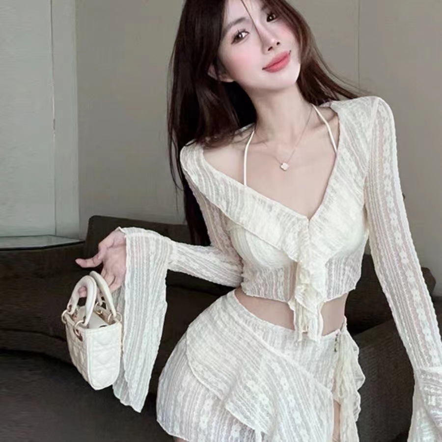밀크쿨 바비 휴가복 세트 레이스 스트랩 작은 가슴을 위한 허리 슬리밍 온천 수영복 여성용 4피스 비키니