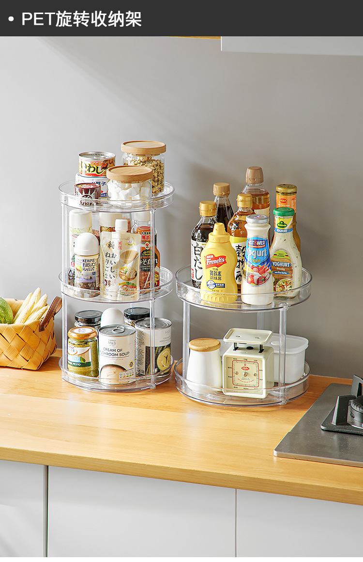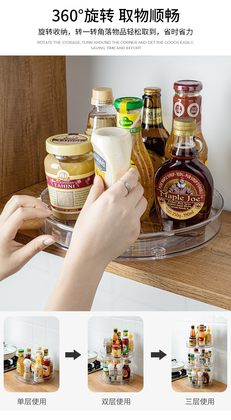 Delun 주방 다기능 조미료 저장 랙 가정용 회전 저장 랙 투명 조미료 저장 트레이