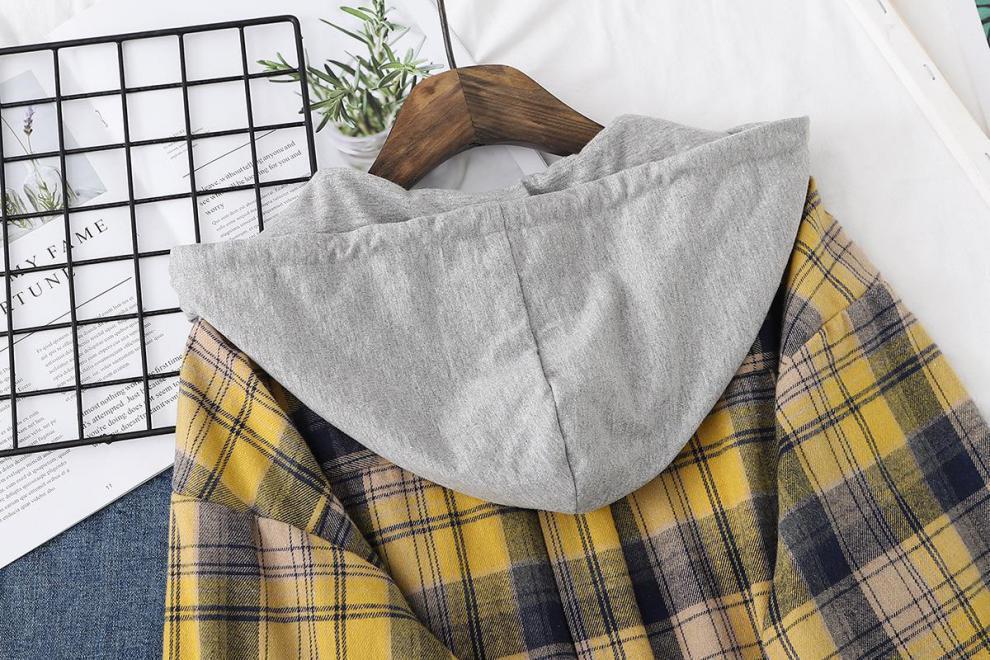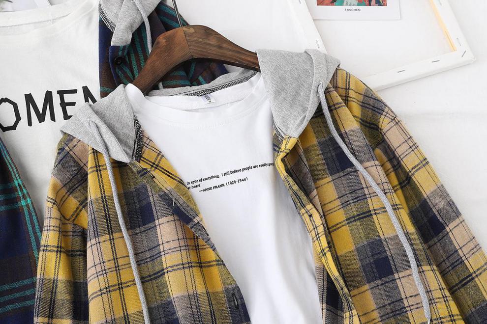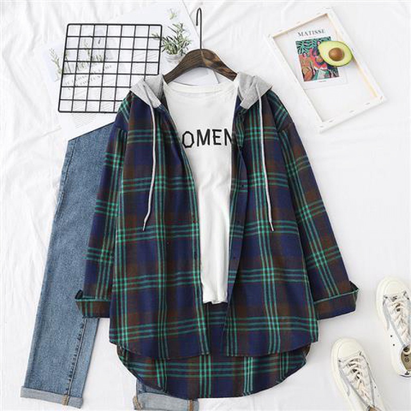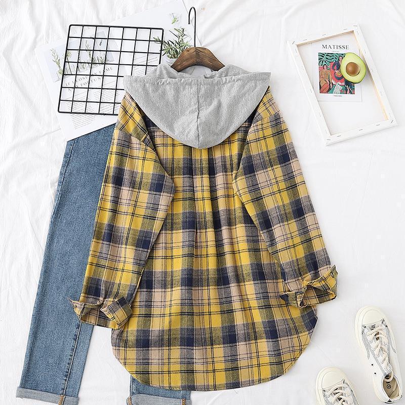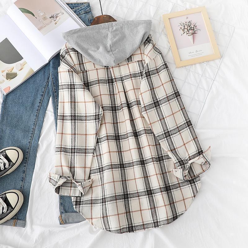 봄 여름 가을 격자 무늬 셔츠 여성용 레트로 홍콩 스타일 Ins 느슨한 후드 카디건 재킷 셔츠스토어 가기