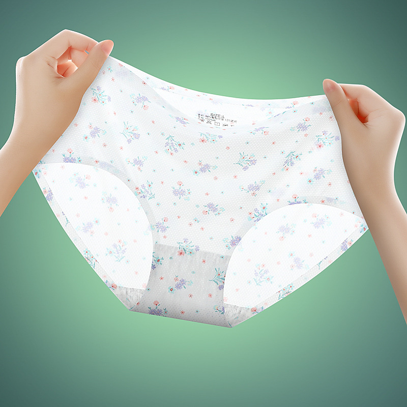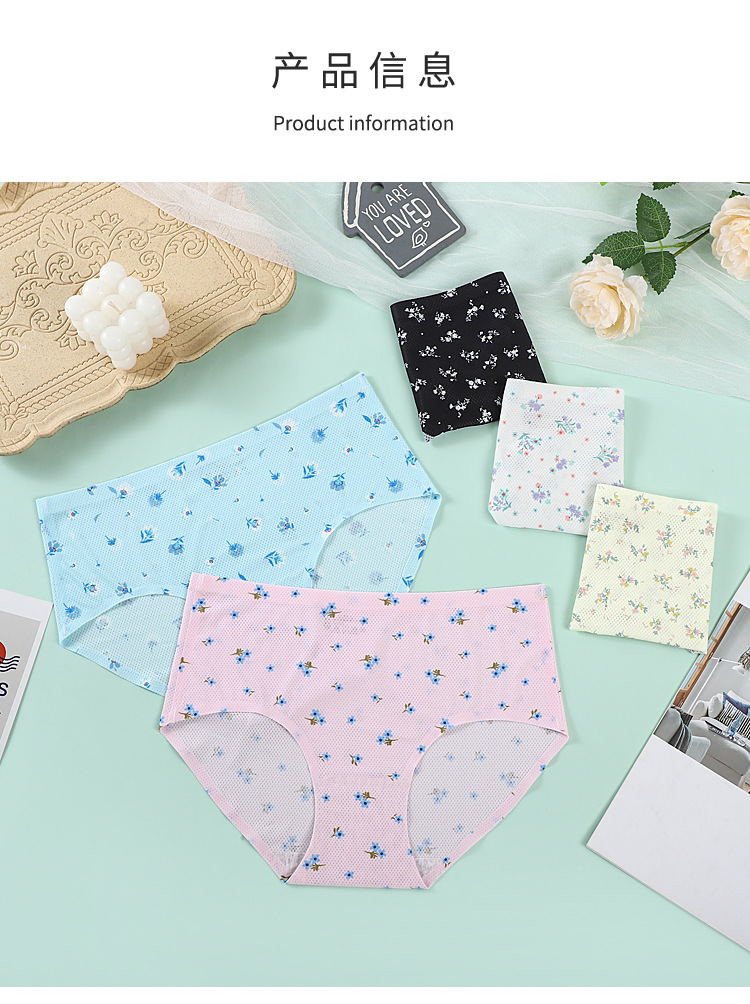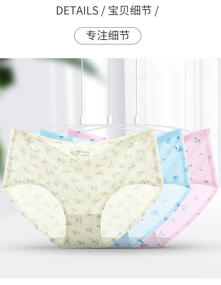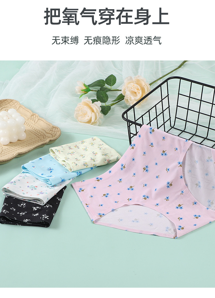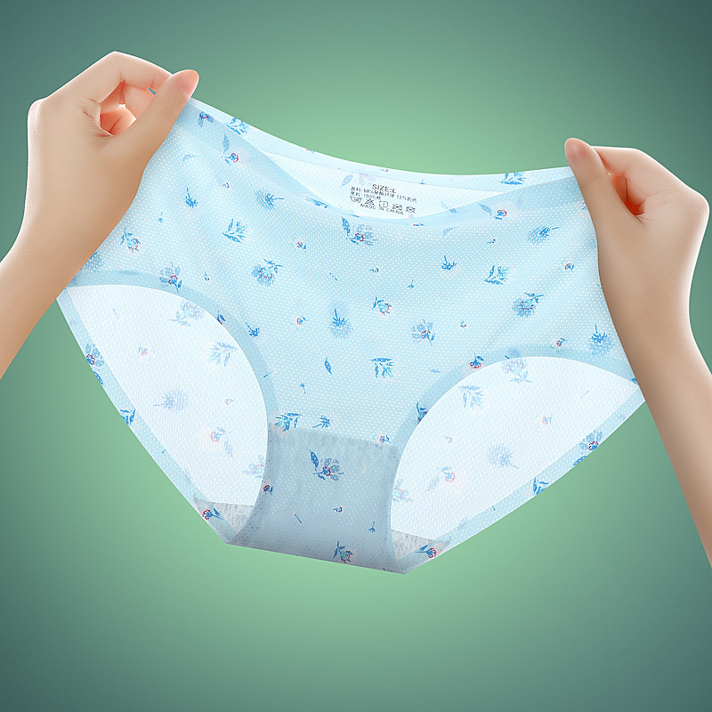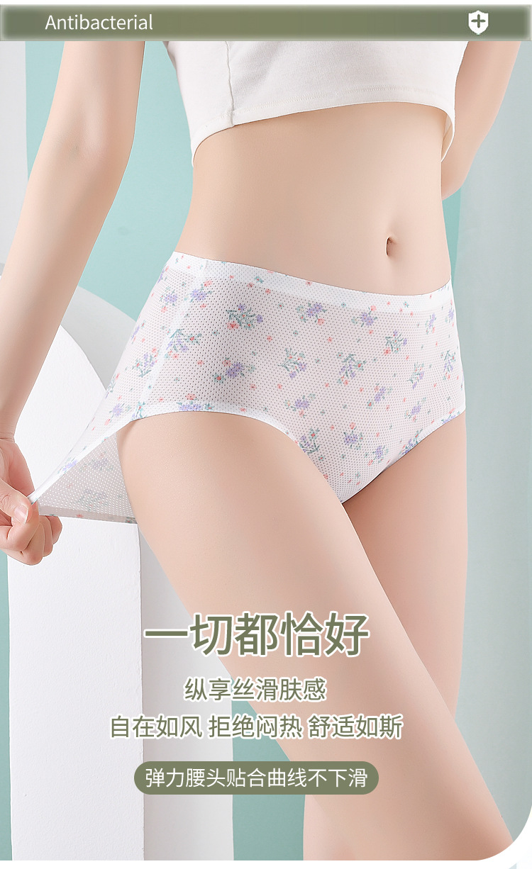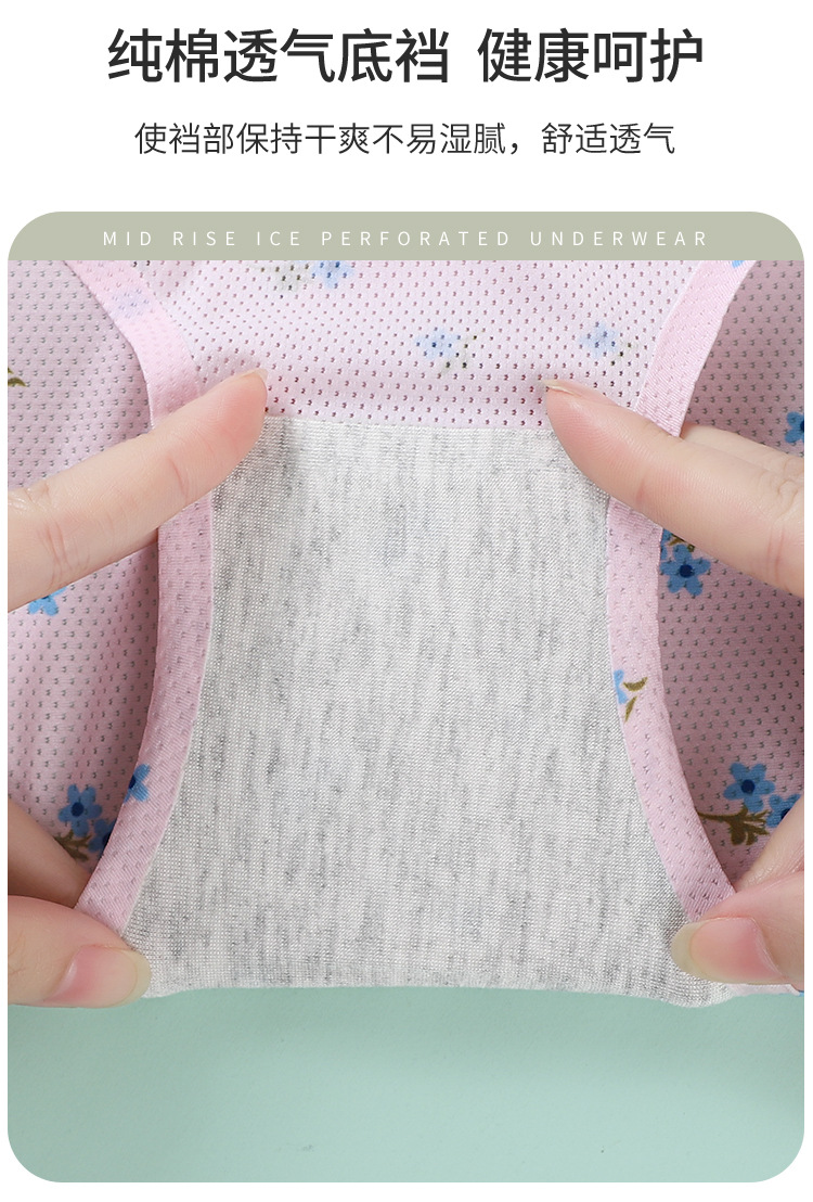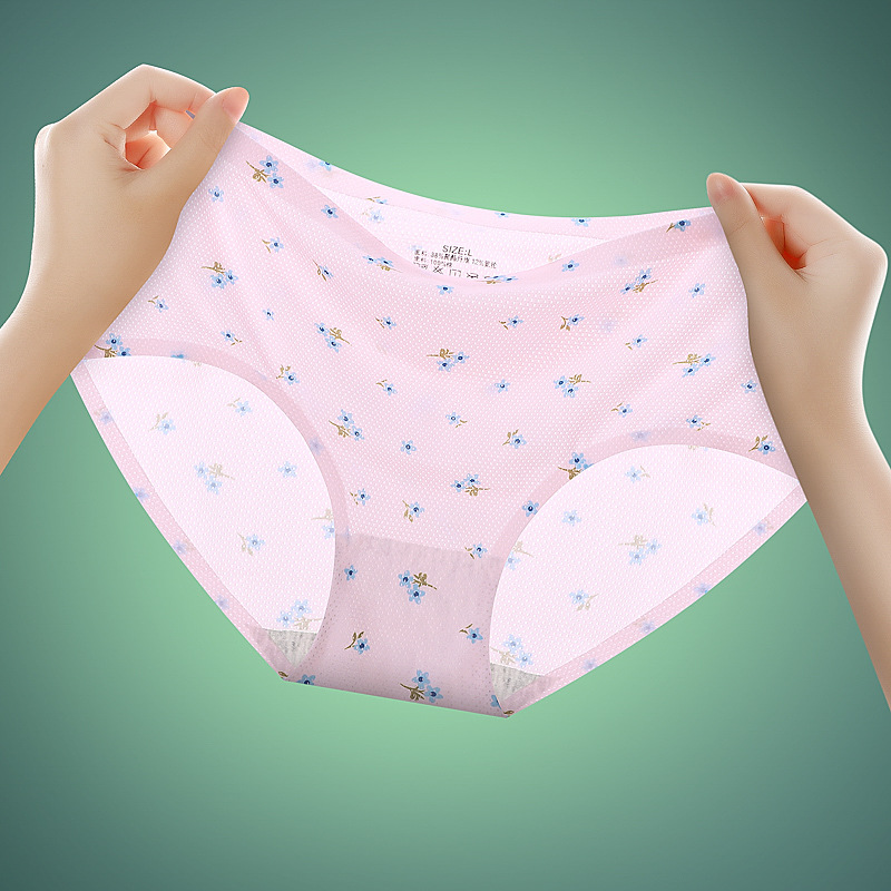 흔적없는 달콤한 여아 속옷 학생 여아 미드 웨이스트 통기성 아이스 실크 울트라 씬 여성용 엉덩이 팬티 순면스토어 가기