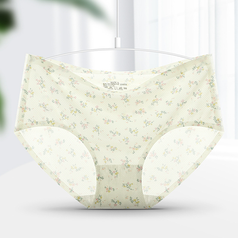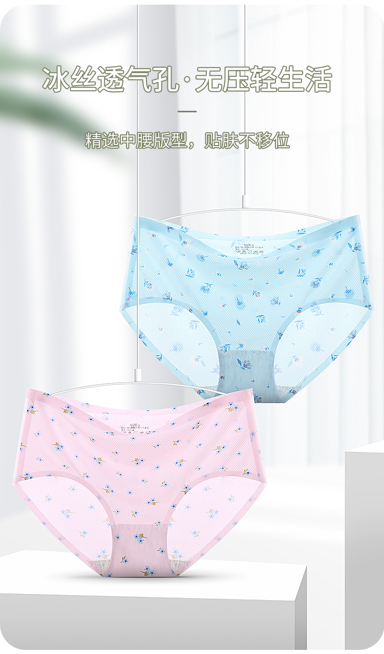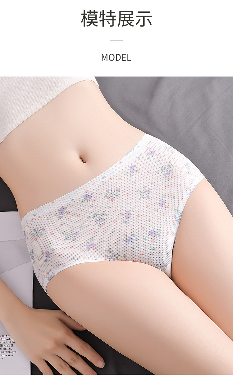 흔적없는 달콤한 여아 속옷 학생 여아 미드 웨이스트 통기성 아이스 실크 울트라 씬 여성용 엉덩이 팬티 순면