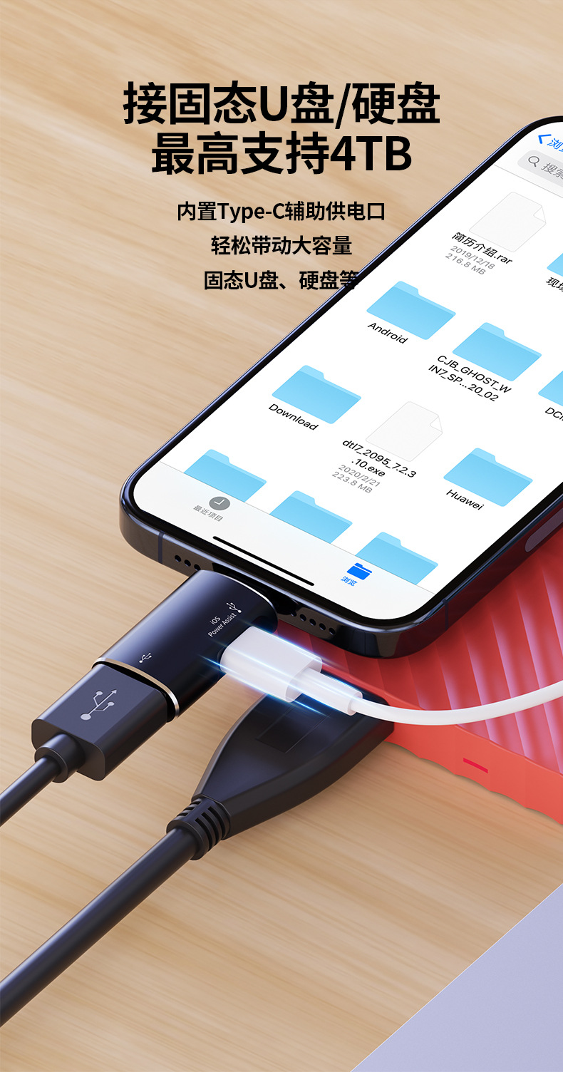 • Black Lightn 인터페이스 [TC 다기능 + Apple 충전 + USB 읽기] 하드 드라이브 읽기