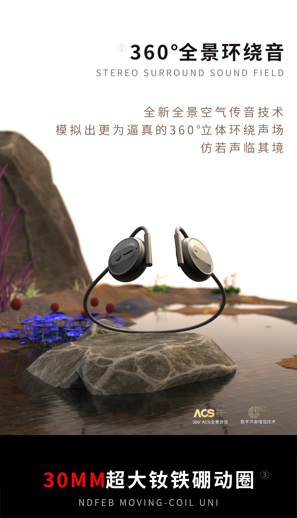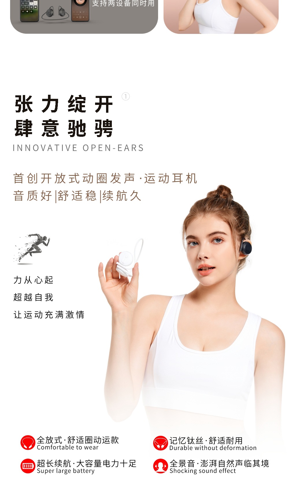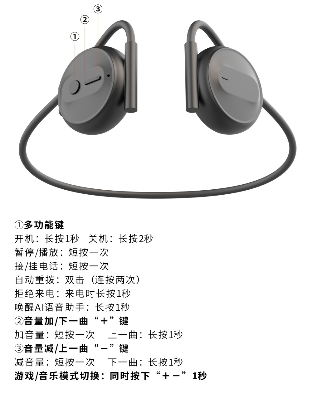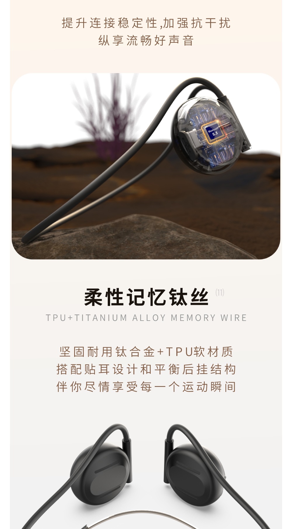 钛合金记忆钢丝自适应耳形 无障碍蓝牙距离超30米 游戏音乐双模式