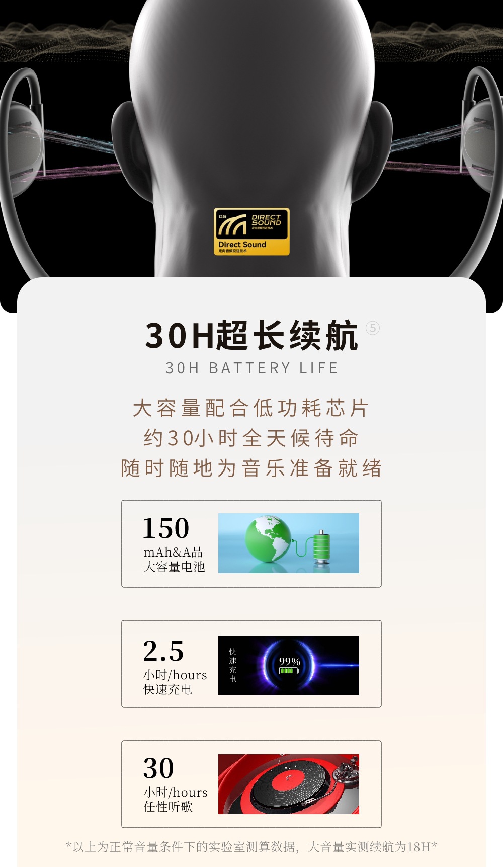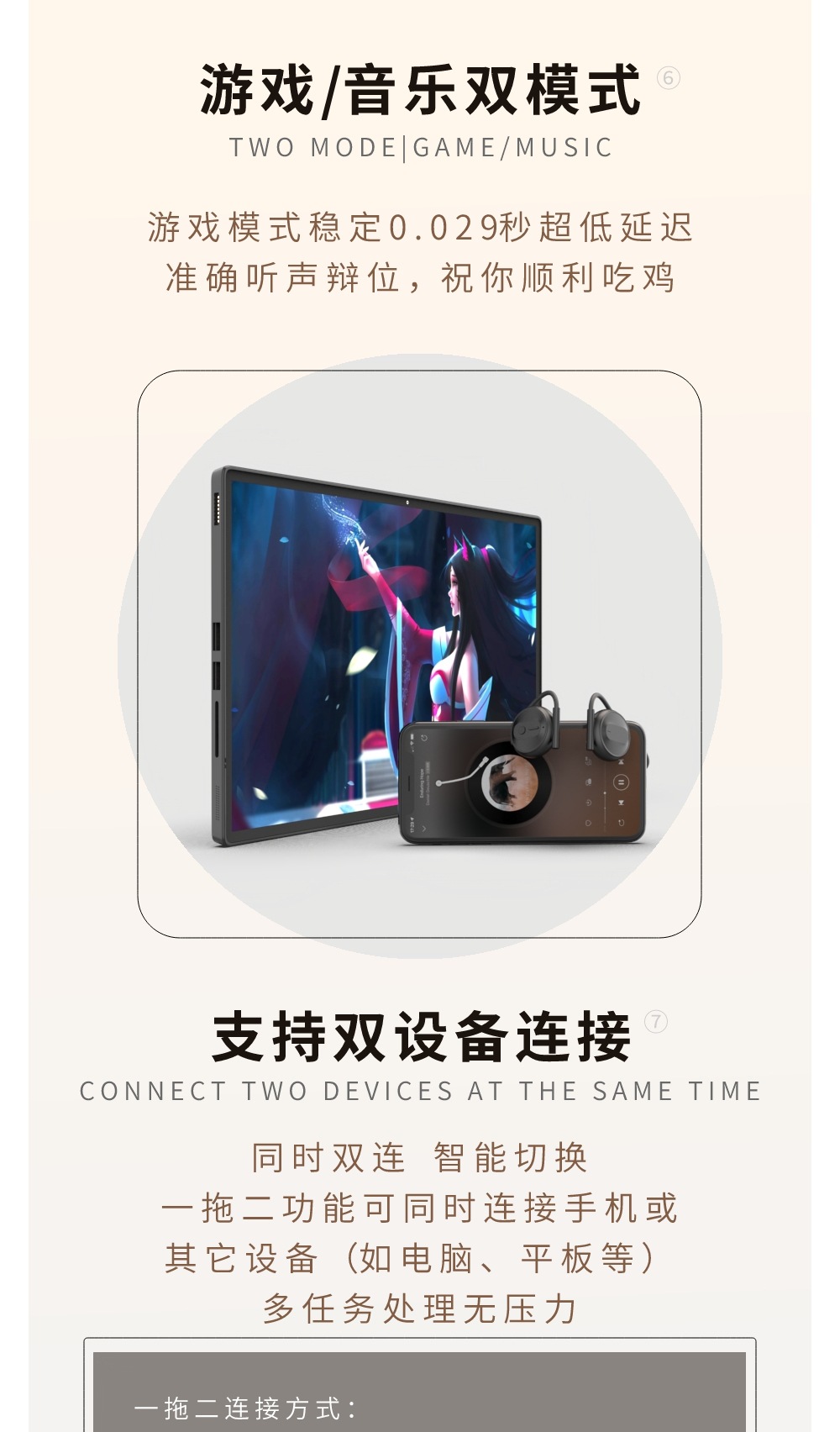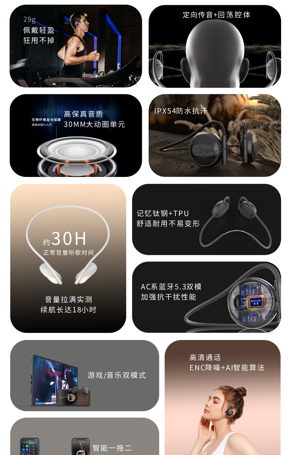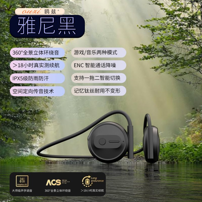 钛合金记忆钢丝自适应耳形 无障碍蓝牙距离超30米 游戏音乐双模式
