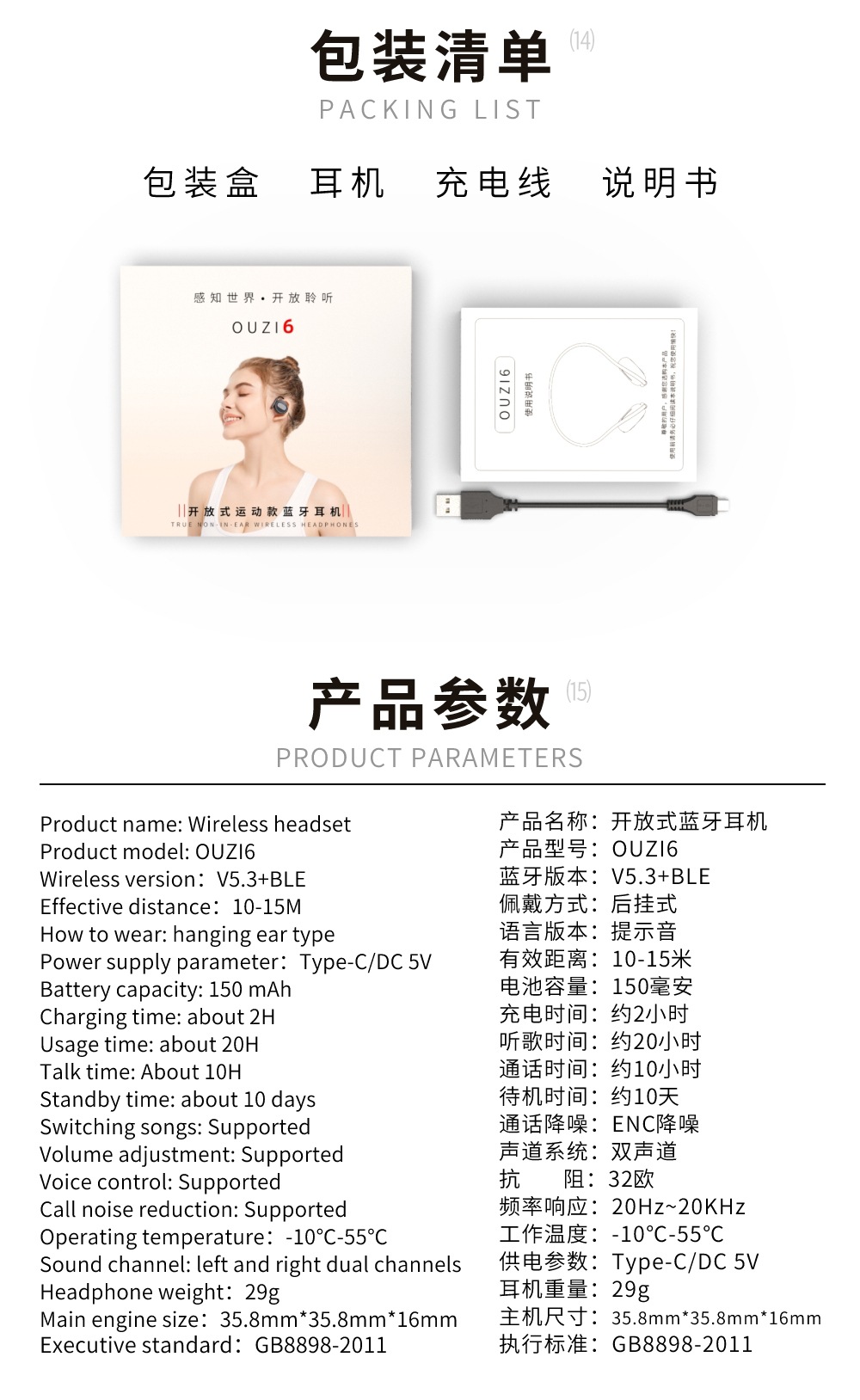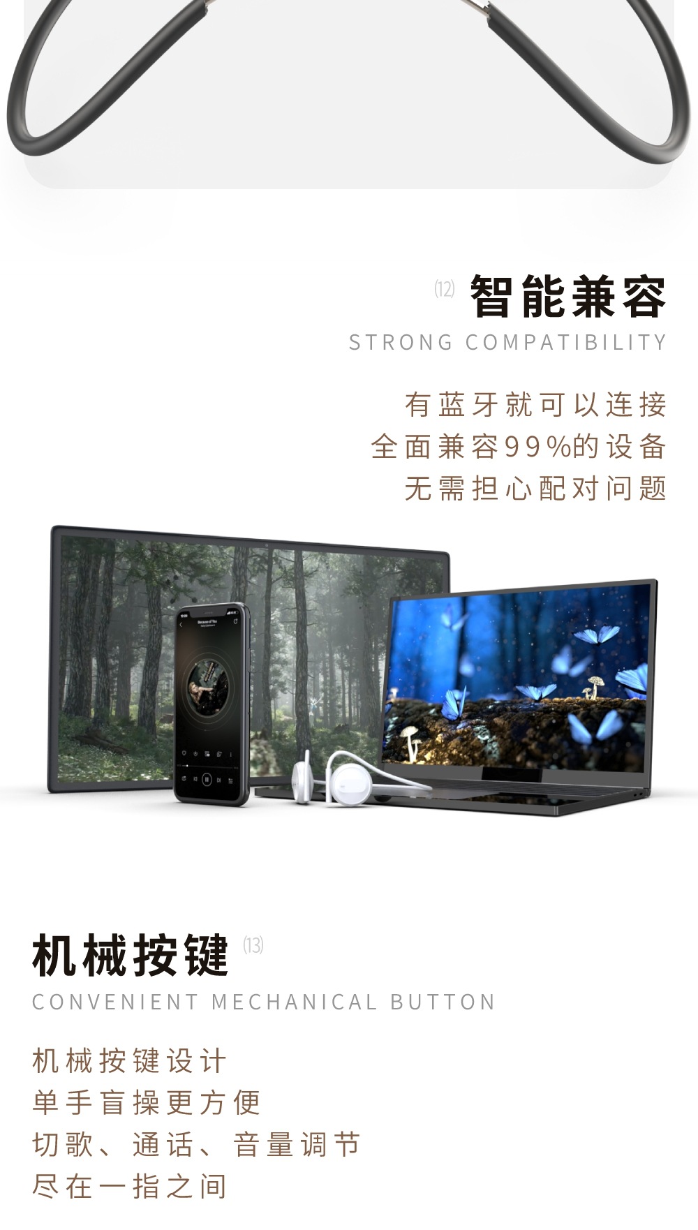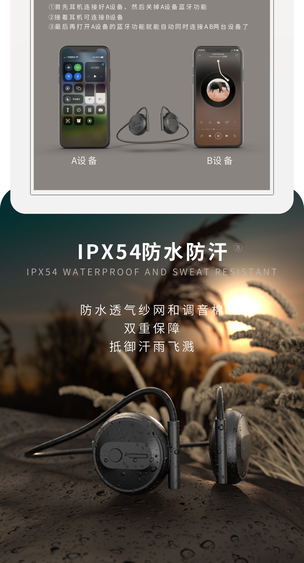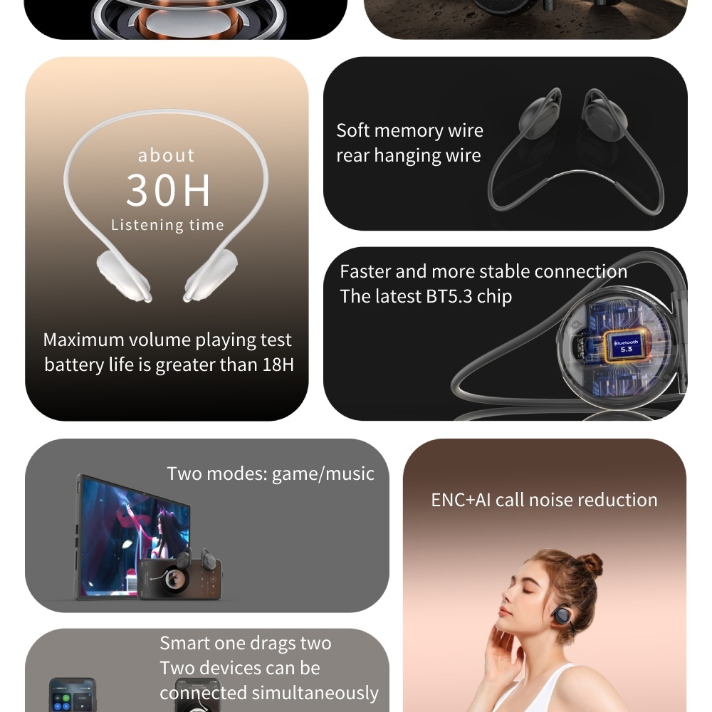钛合金记忆钢丝自适应耳形 无障碍蓝牙距离超30米 游戏音乐双模式