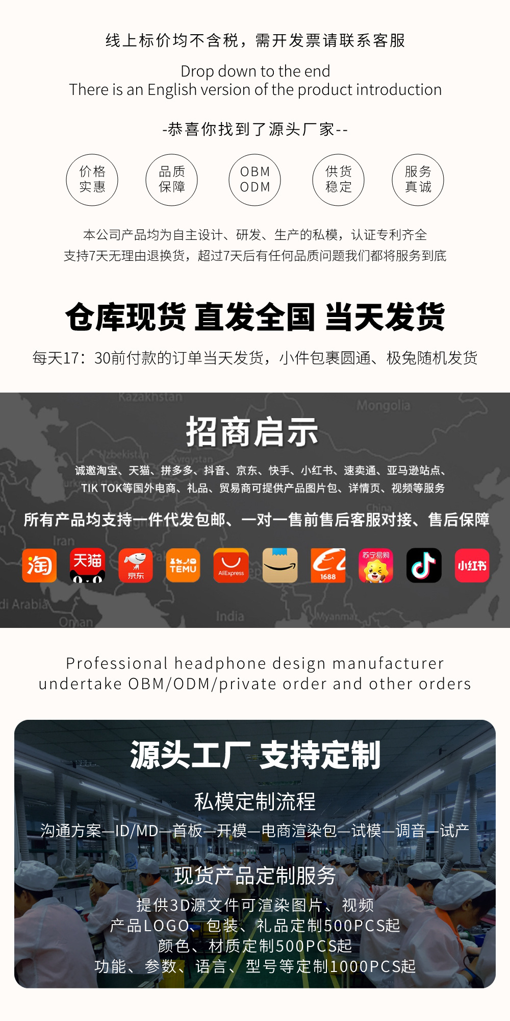 IPX5防水防尘 30MM大动圈单元 全景环绕立体声 高保真音质