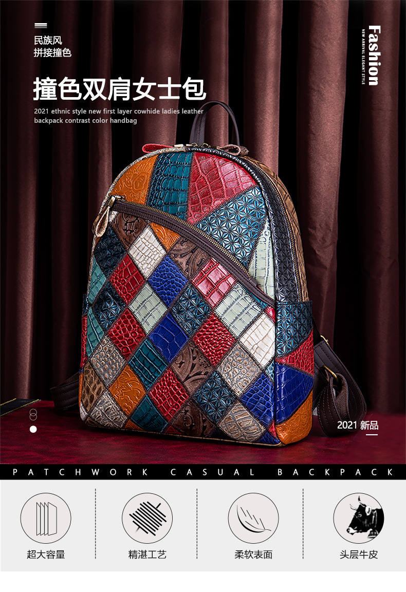 NIUCUNZH 여성용 배낭 첫 번째 레이어 소 가죽 여성용 배낭 빈티지 수제 가죽 대용량 배낭스토어 가기