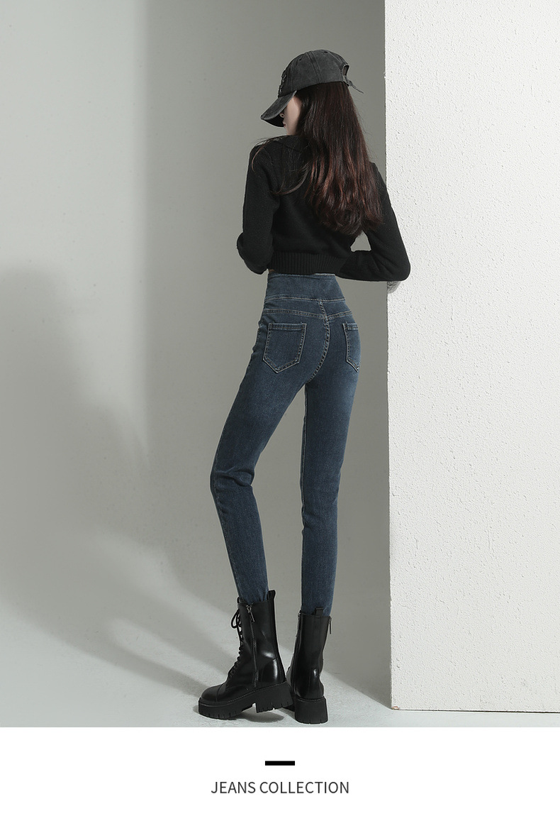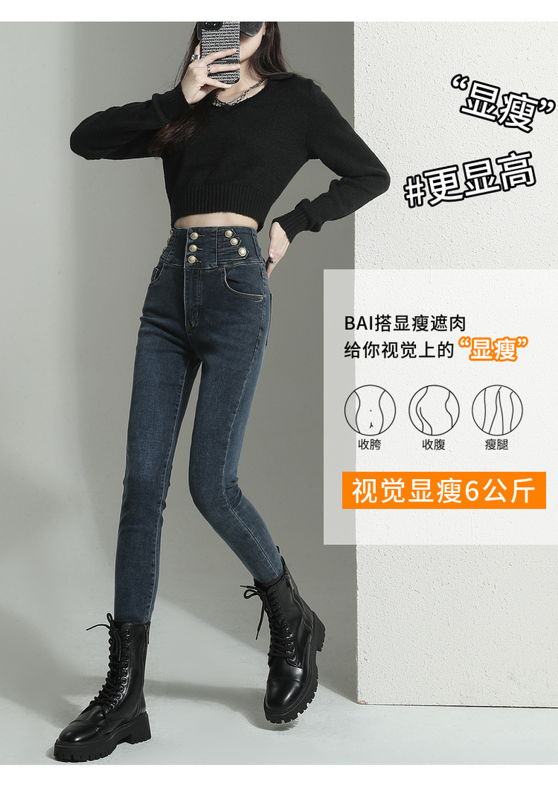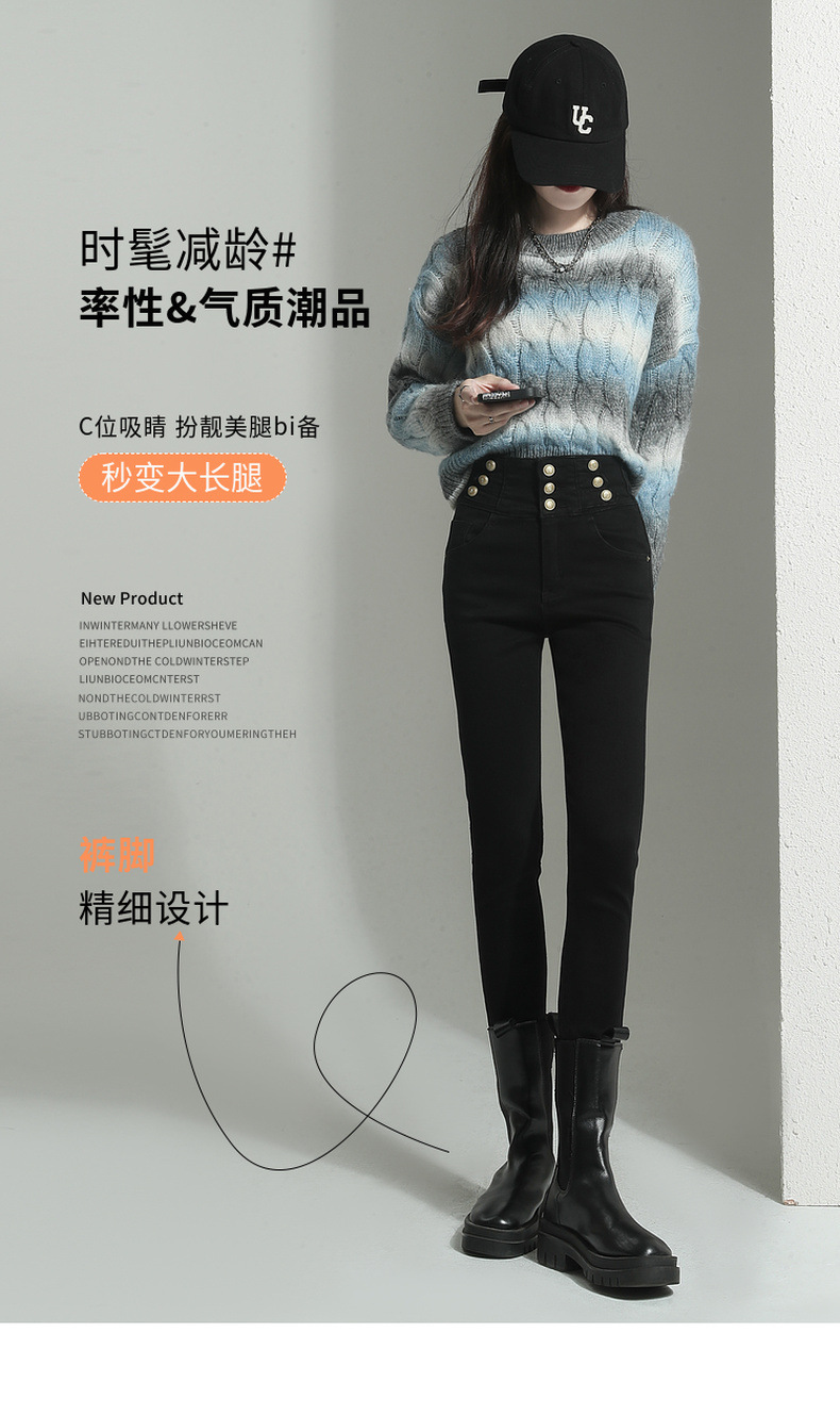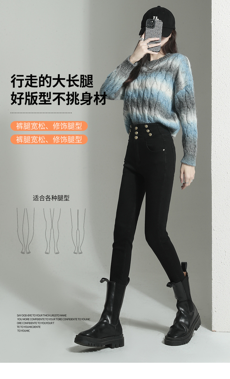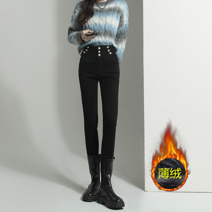 싱글 팬츠/기모 블랙 청바지 여성용 스키니 팬츠 2023 새로운 봄과 가을 하이 웨이스트 슬리밍 겨울 스타킹스토어 가기