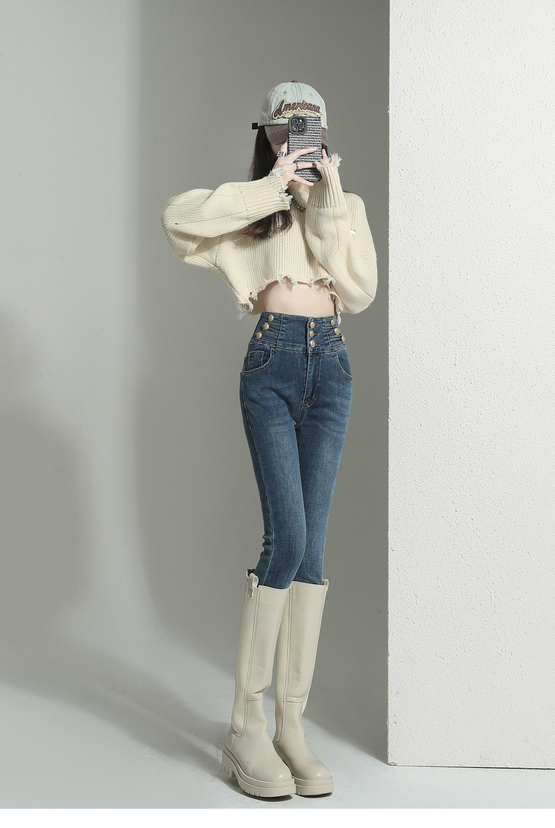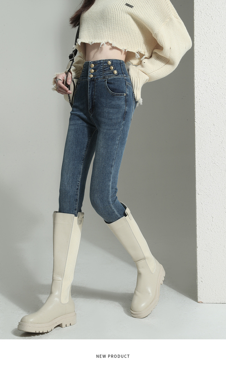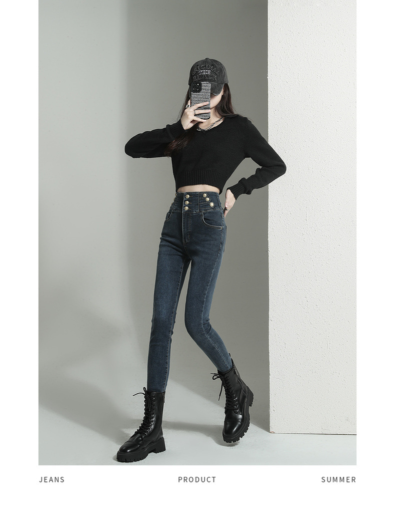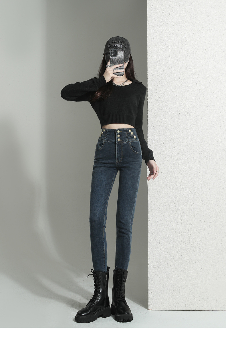 싱글 팬츠/기모 블랙 청바지 여성용 스키니 팬츠 2023 새로운 봄과 가을 하이 웨이스트 슬리밍 겨울 스타킹스토어 가기