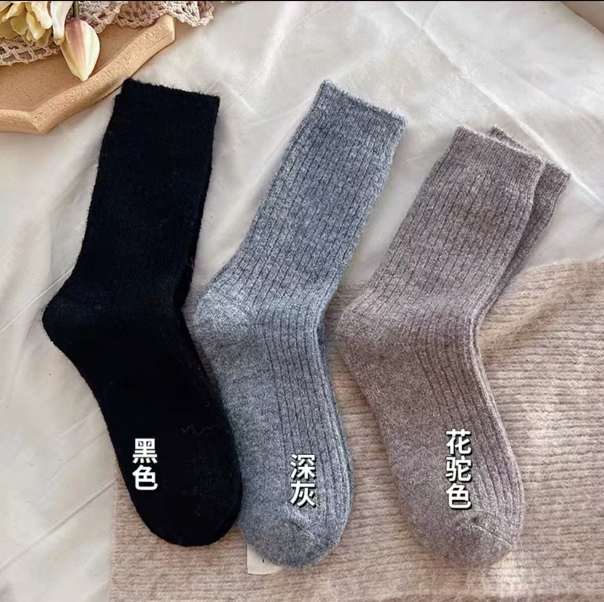 袜子女秋冬新品韩系复古民族风银丝立体羊毛花纹女袜混纺堆堆袜子 RMB:5.30