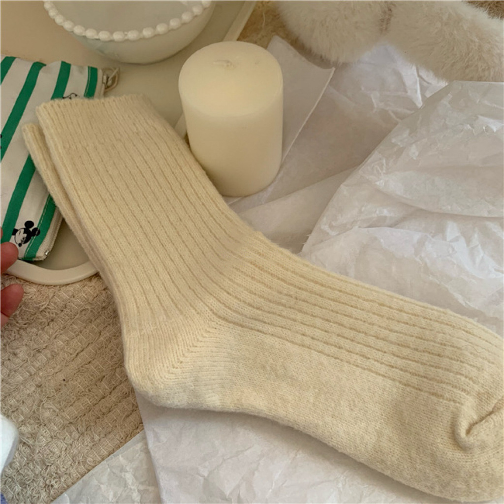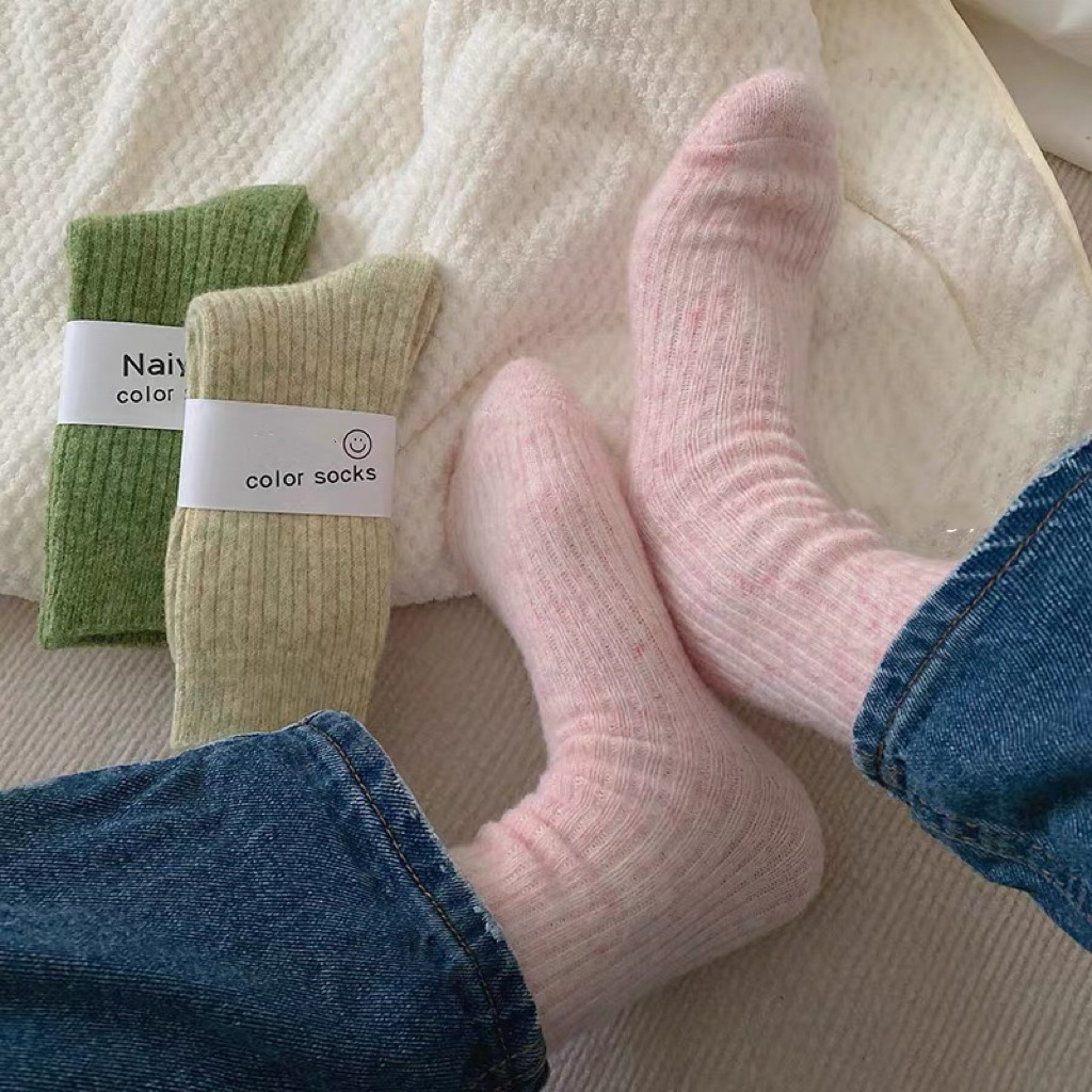 디자인스펀 울 양말과 벨벳 따뜻한 두꺼운 여성용 종아리 양말, 가을 겨울 스택 양말, 한국 스타일의 여성용 컬러, 부드러운 핑크색, 땀 흡수성스토어 가기