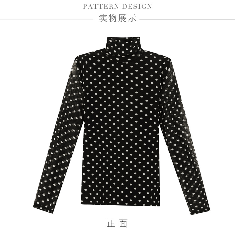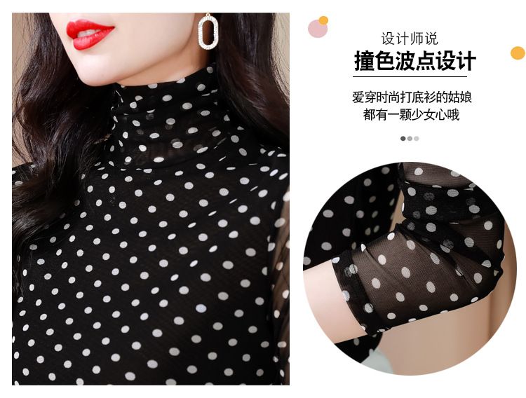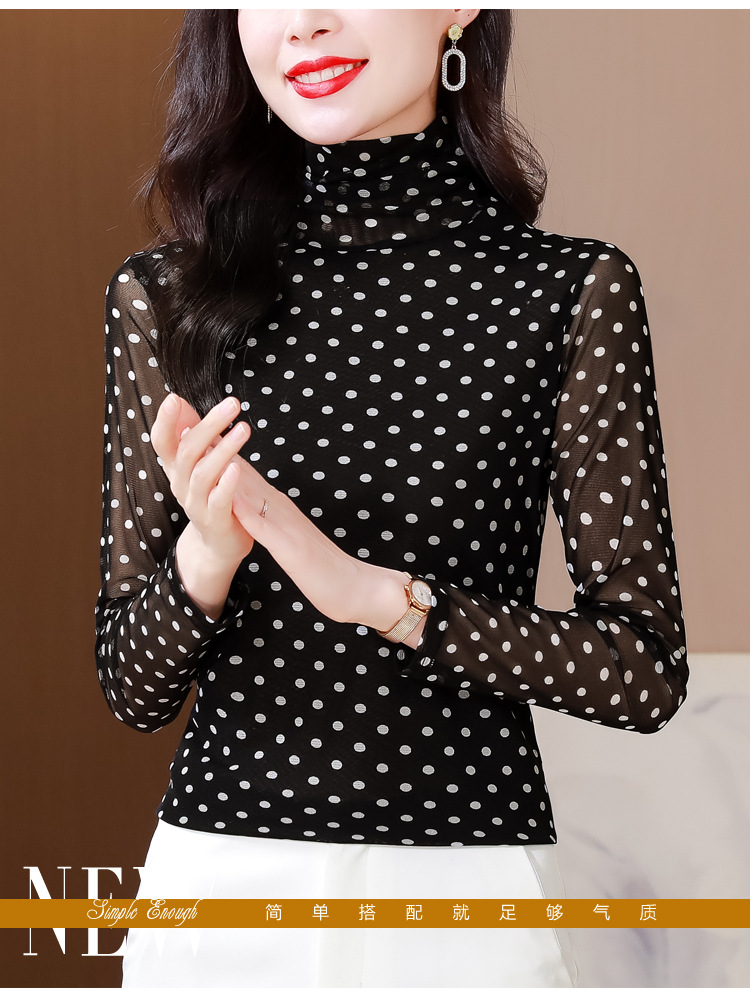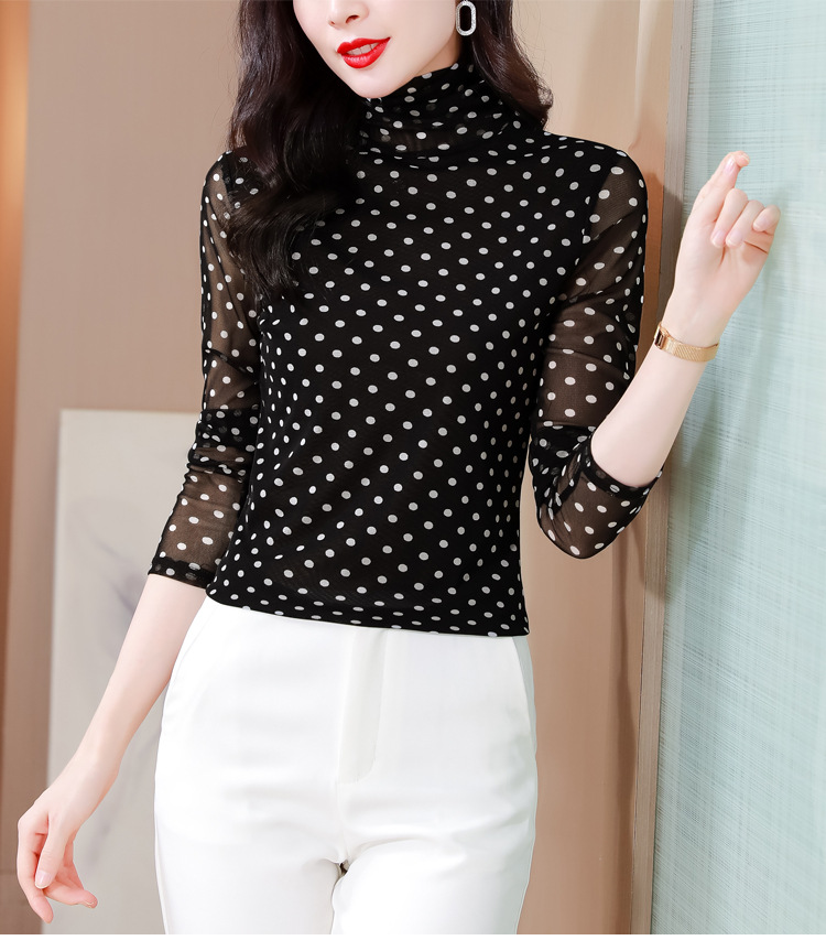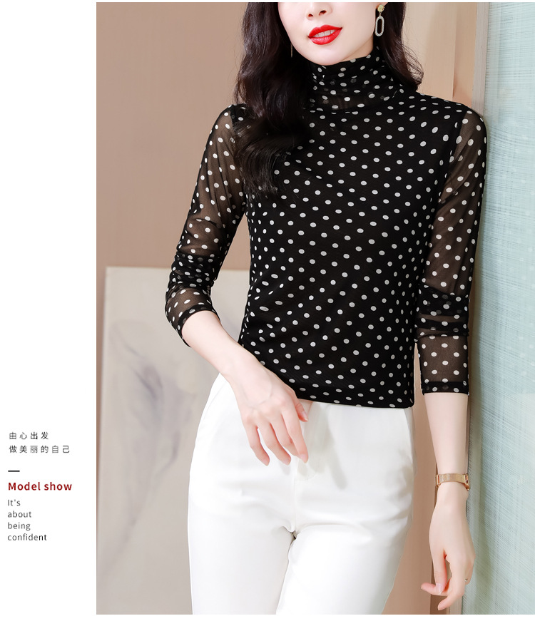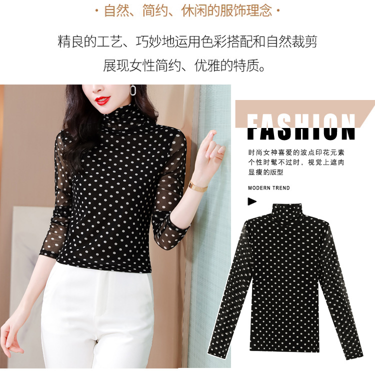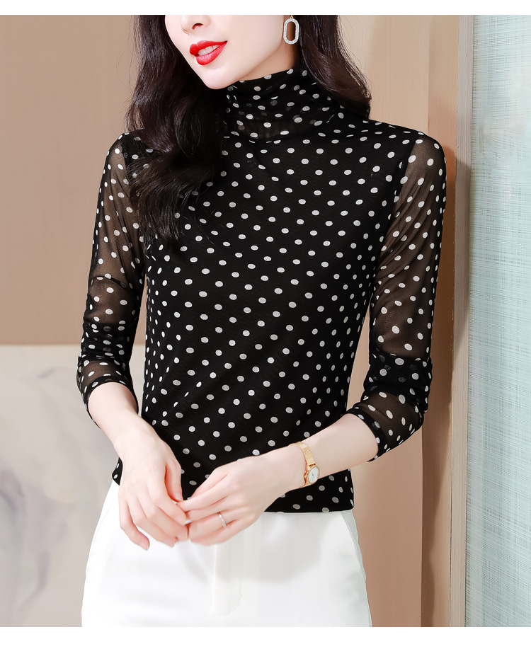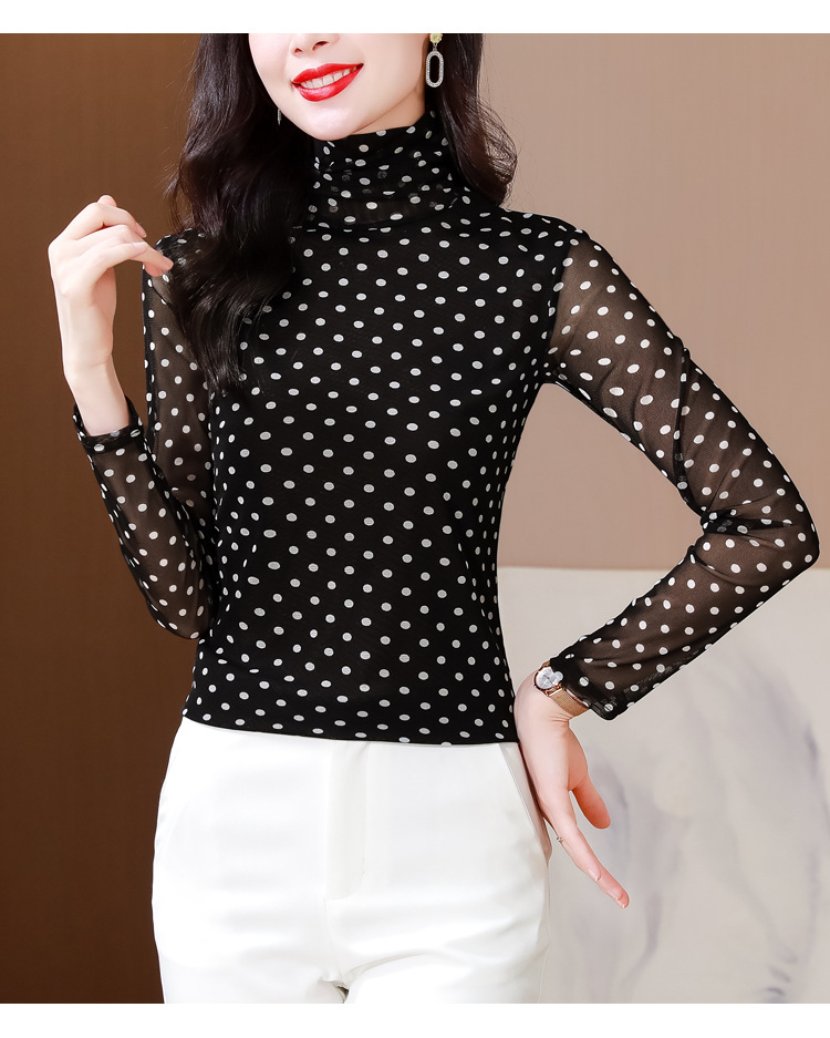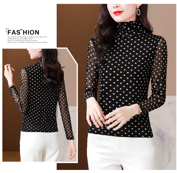 재고 2023 가을/겨울 새로운 여성의 하이 넥 긴 소매 백킹 셔츠 패션 인쇄 풀오버 티셔츠 셔츠 탑