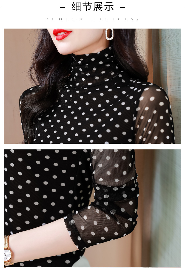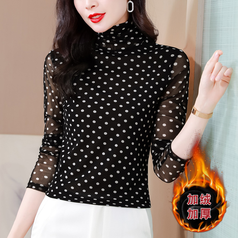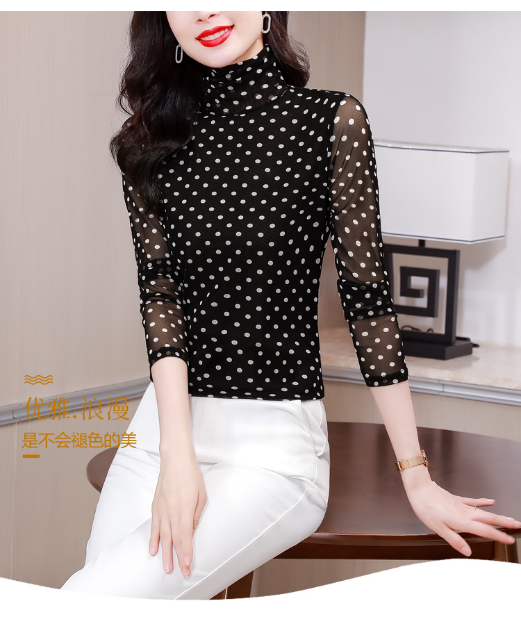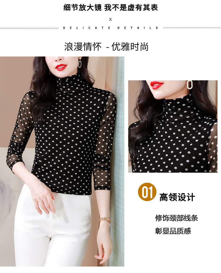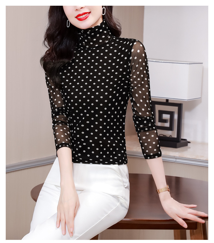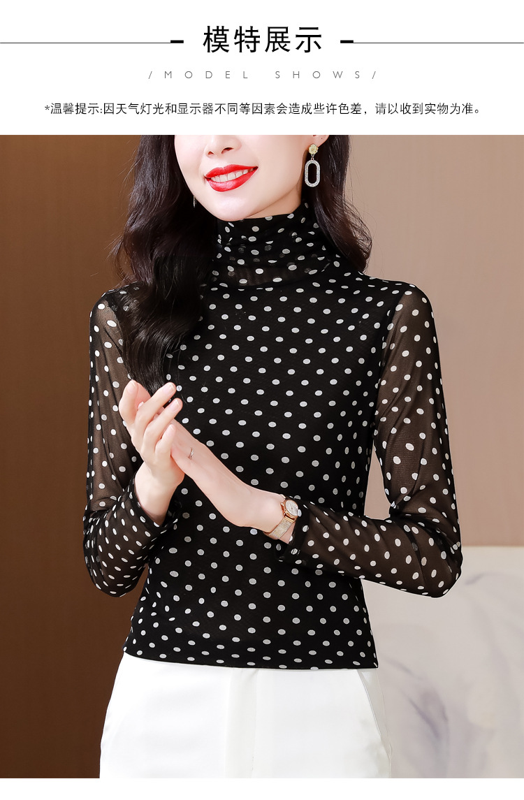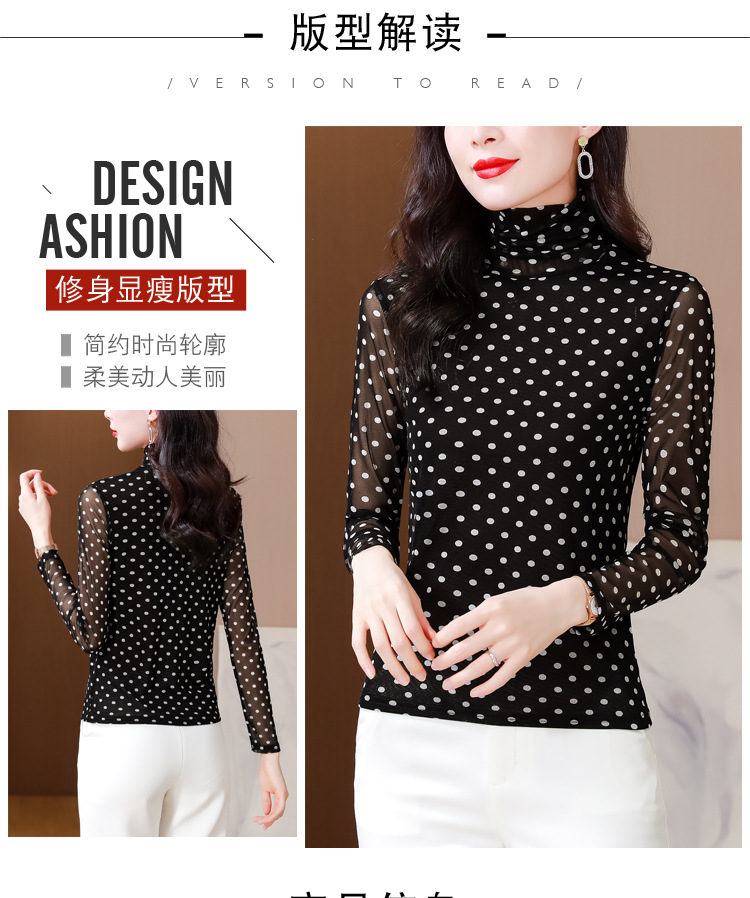 재고 2023 가을/겨울 새로운 여성의 하이 넥 긴 소매 백킹 셔츠 패션 인쇄 풀오버 티셔츠 셔츠 탑
