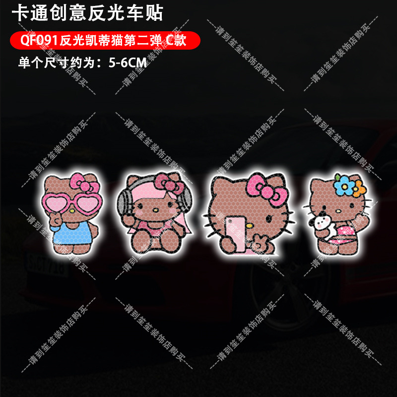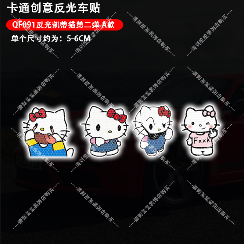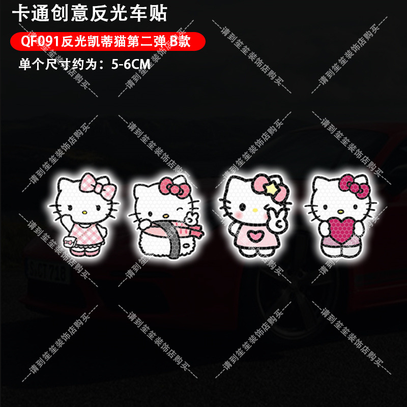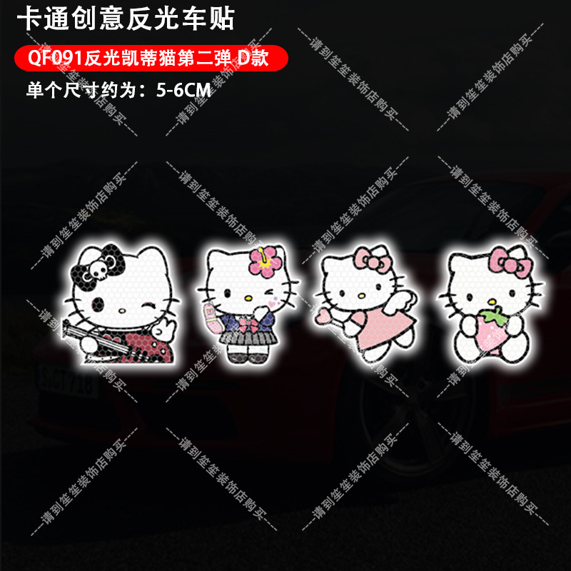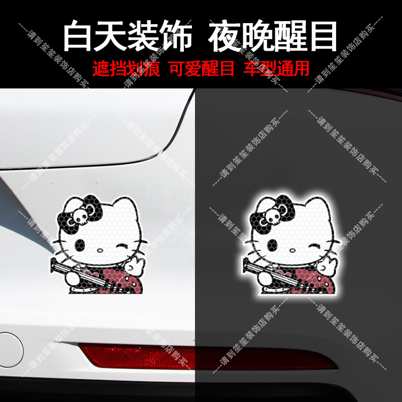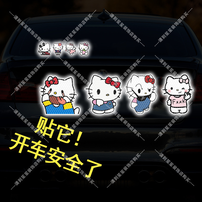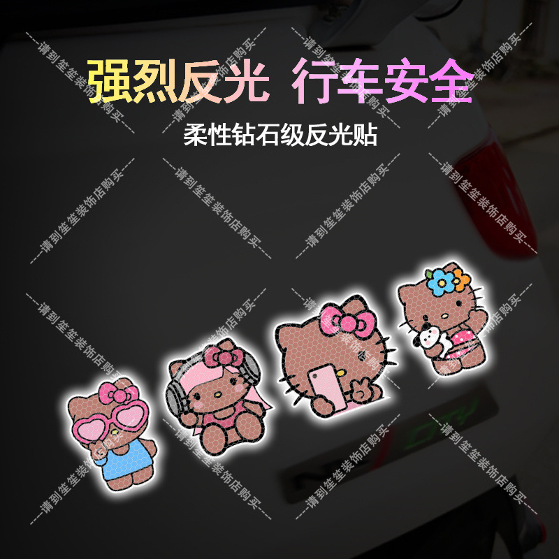 헬로 키티 반사 스티커 만화 KT 고양이 귀여운 전기 오토바이 바디 스티커 자동차 범퍼 경고 반사 스티커스토어 가기