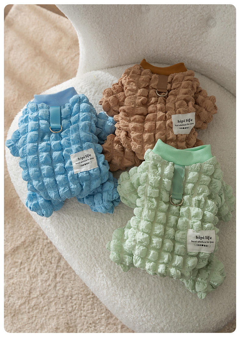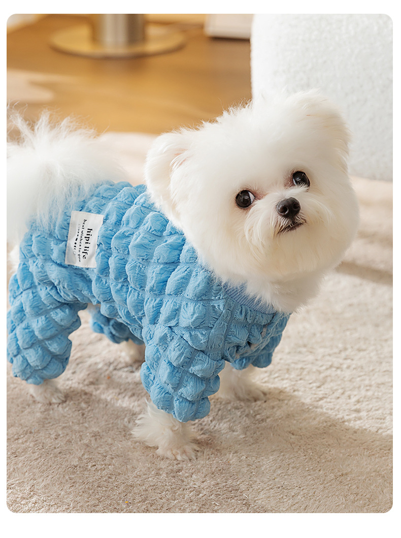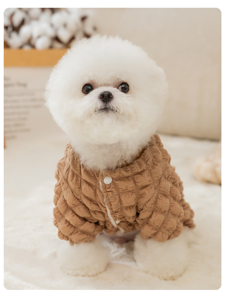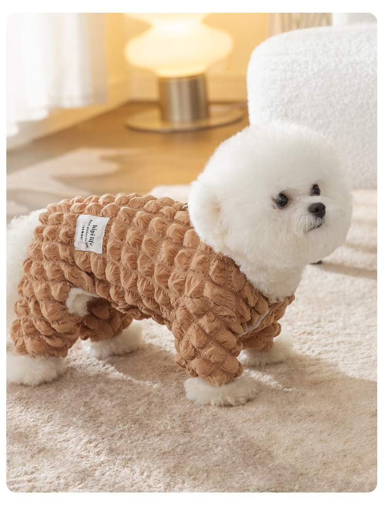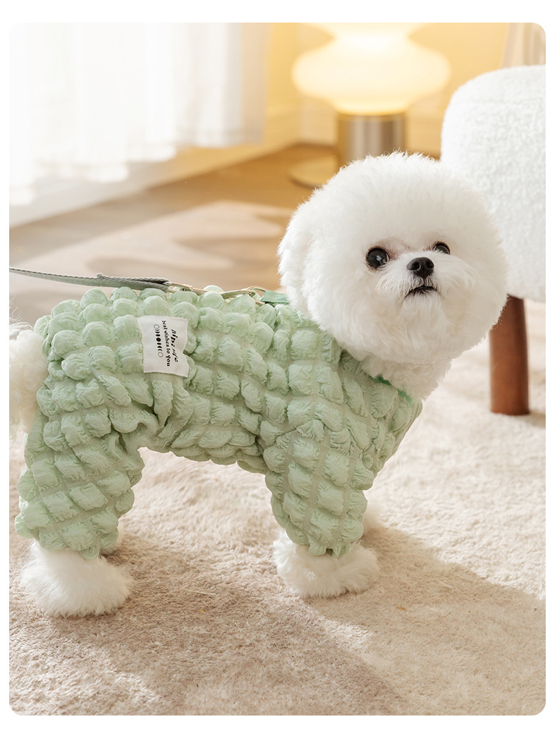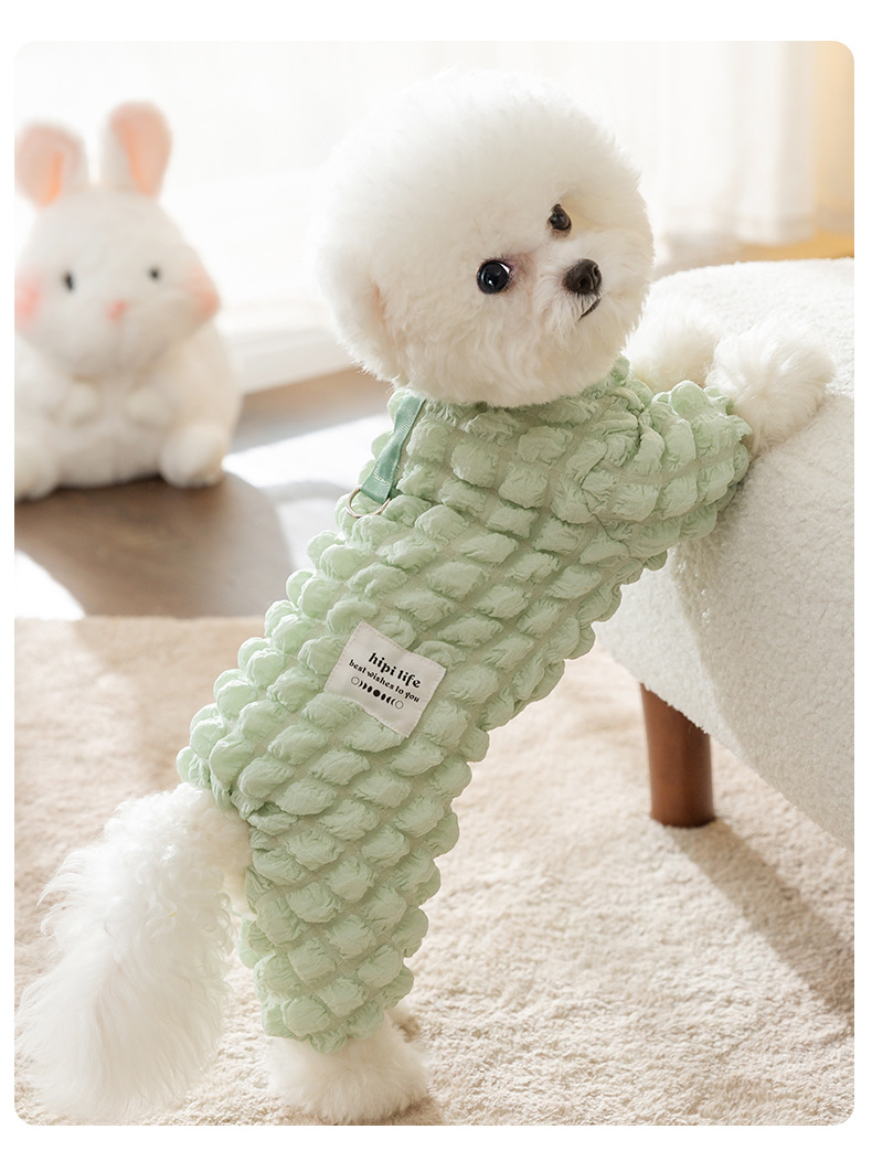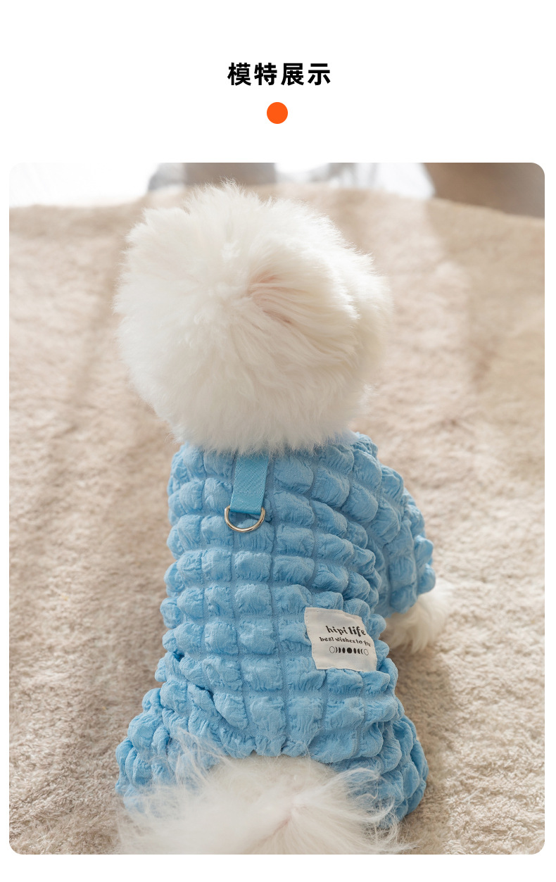 애완 동물 가을과 겨울 개 거품 격자 무늬 견인 두꺼운 겨울 곰 테디 미녀를 기모 네 다리 옷스토어 가기