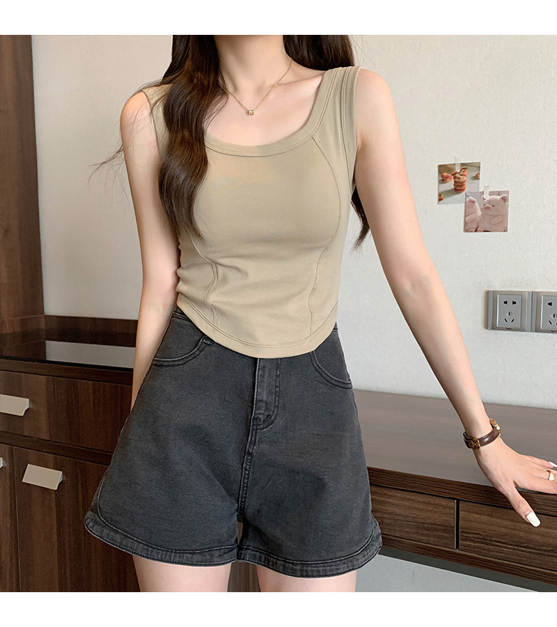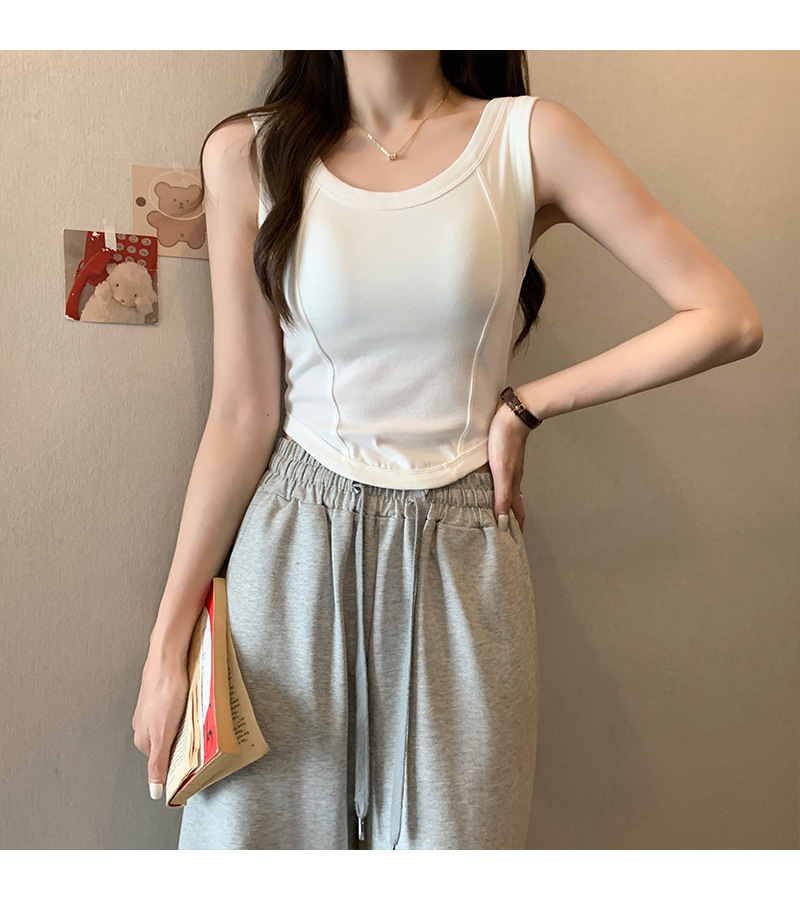 순수한 한국 스타일 단색 와이드 숄더 아름다운 등 조끼 가슴 패드 고정 컵 랩 가슴 안티 러닝 라이트 바닥 여성용 짧은 탑스토어 가기