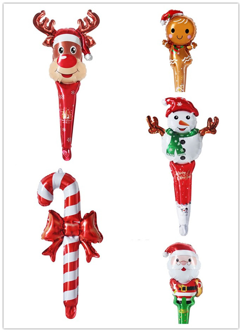 크리스마스 스틱 산타 눈사람 엘크 목발 진저 브레드 맨 풍선 휴대용 스틱 중간 스틱 크리스마스 풍선스토어 가기