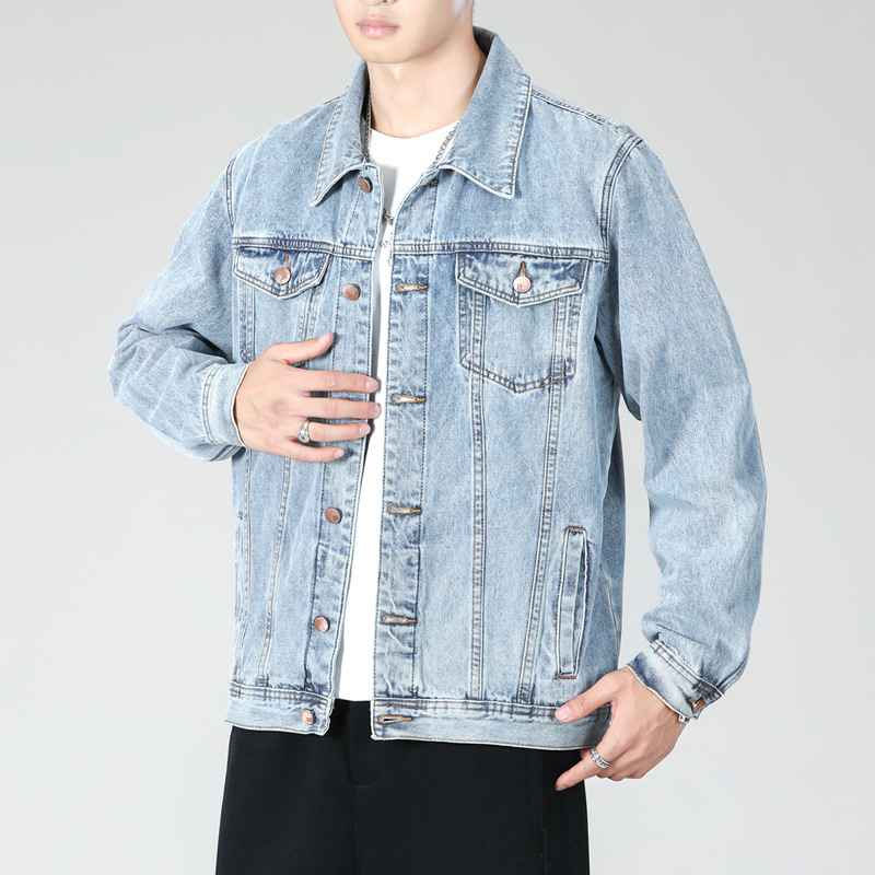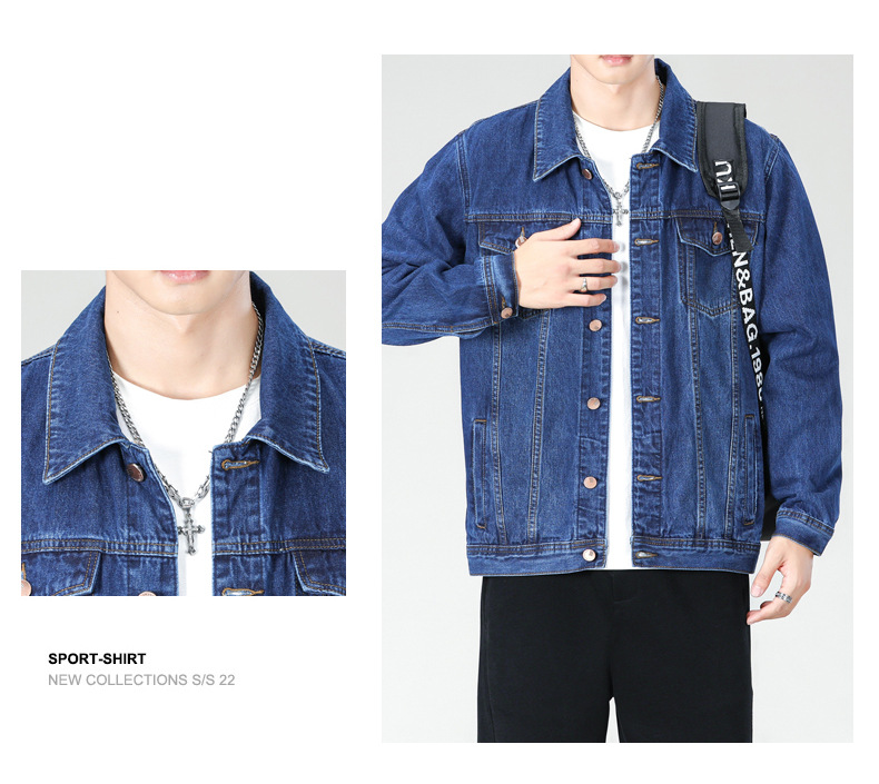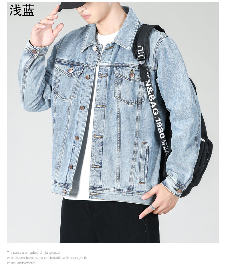 새로운 데님 재킷 남자의 Ansika 느슨한 청소년 작업복 탑 재킷 옷깃 데님 옷 6010스토어 가기
