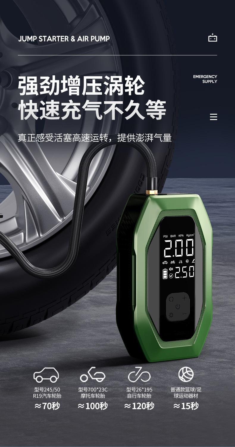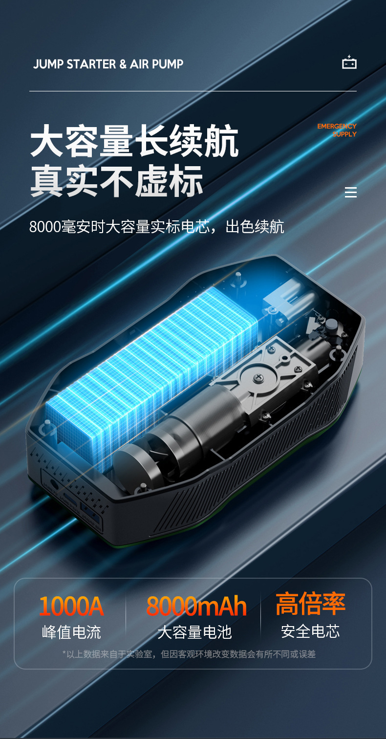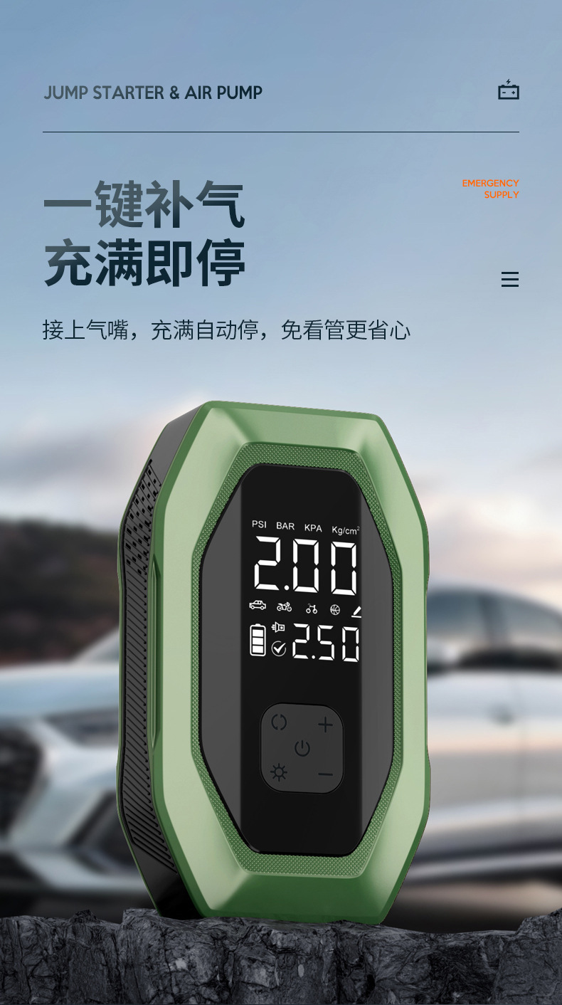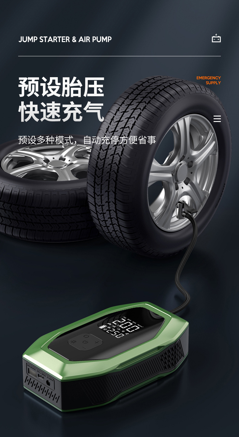 자동차 비상 시동 전원 공급 장치, 에어 펌프 일체형 기계, 파워 업 보물, 배터리 비상 대기 자동차 충전 보물