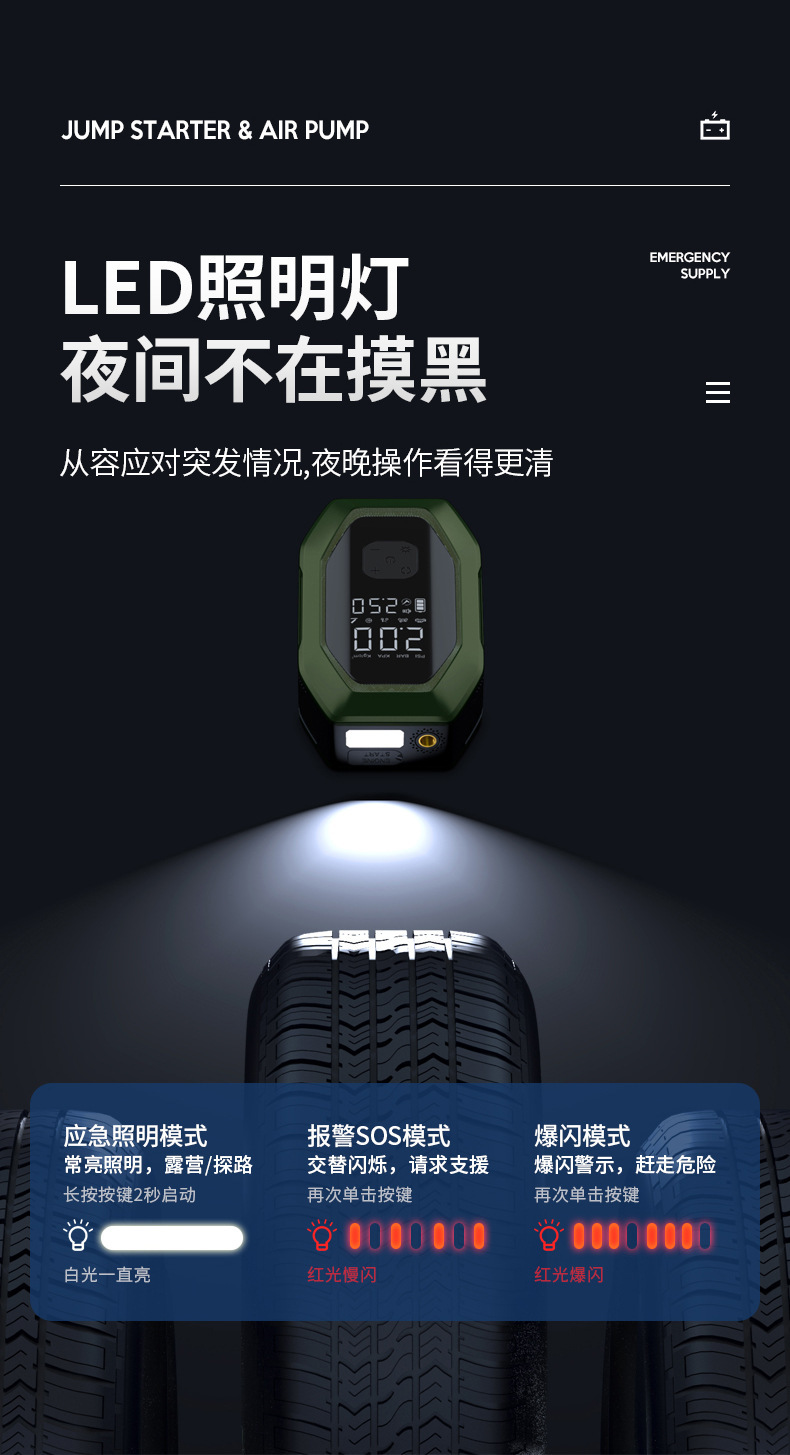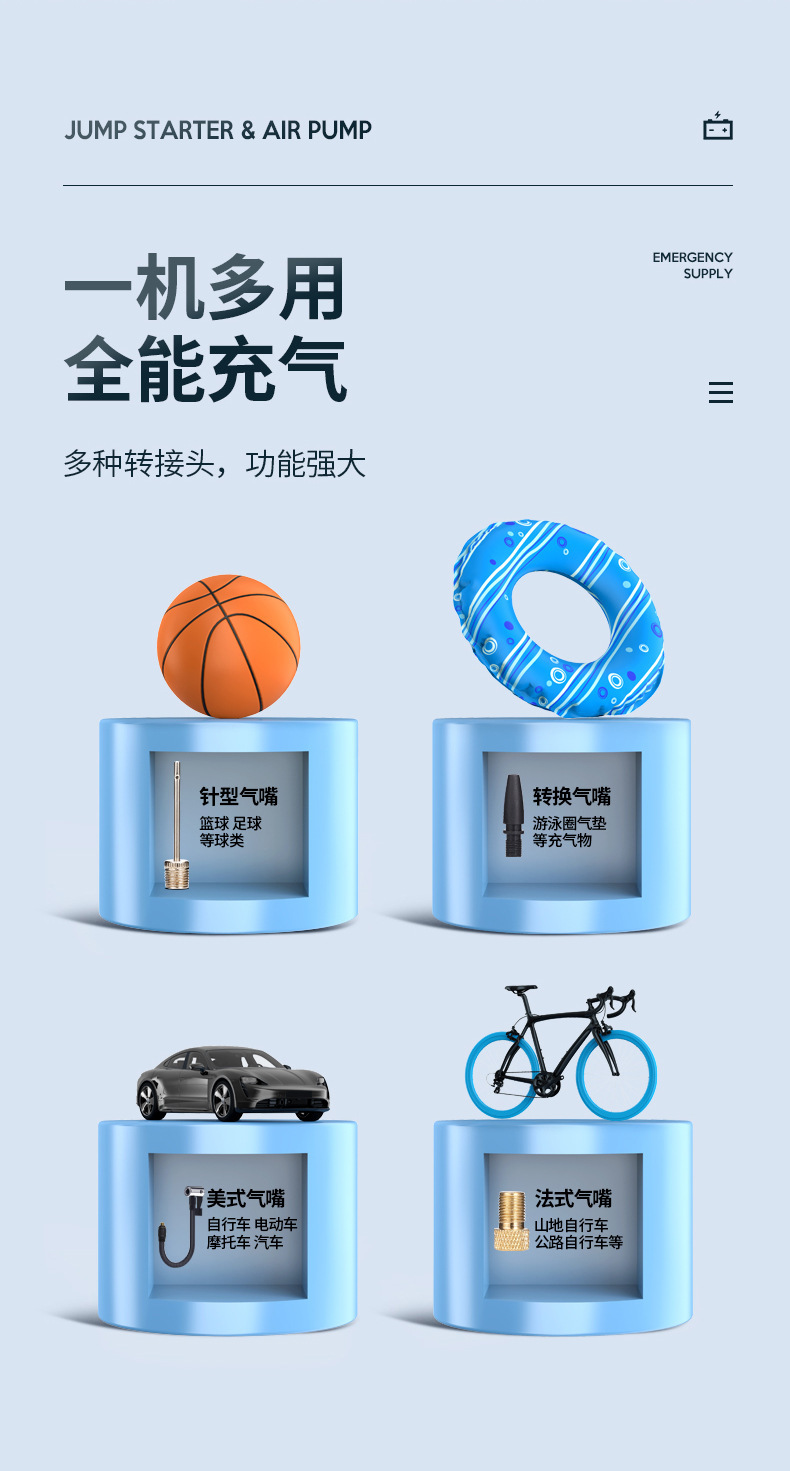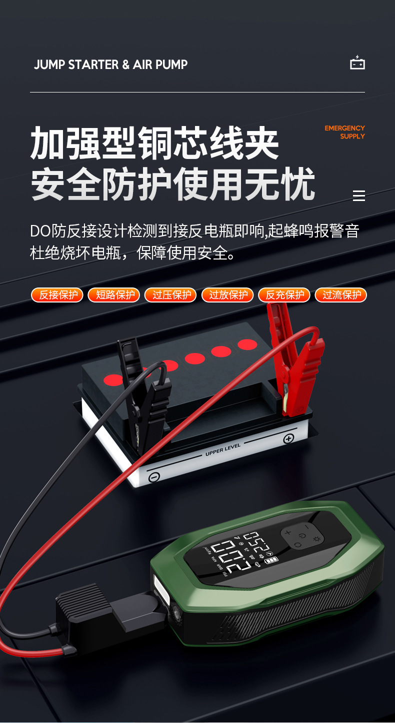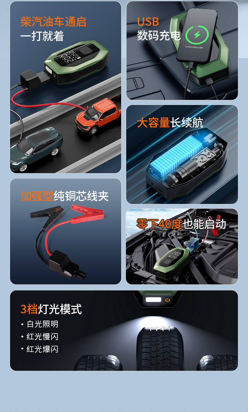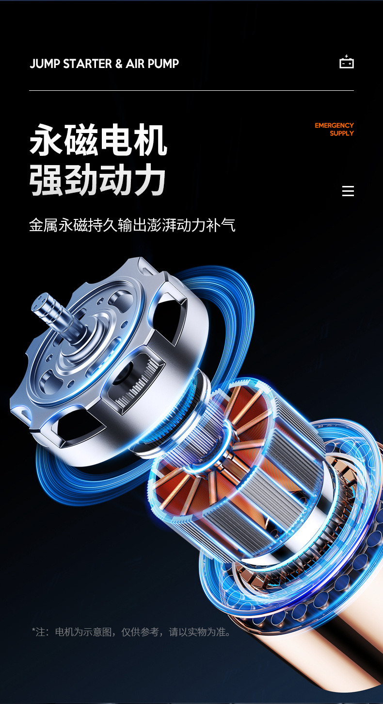 자동차 비상 시동 전원 공급 장치, 에어 펌프 일체형 기계, 파워 업 보물, 배터리 비상 대기 자동차 충전 보물