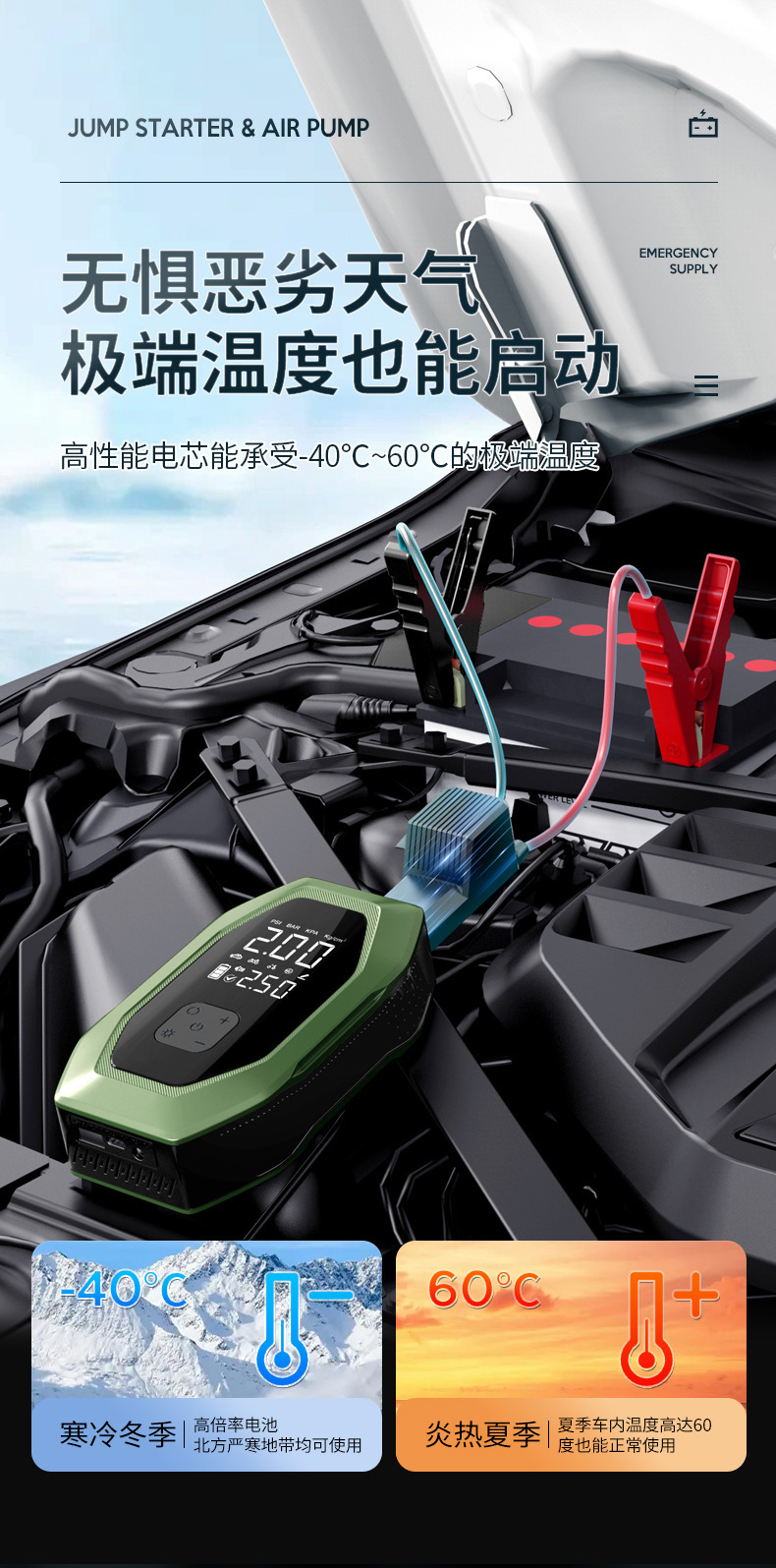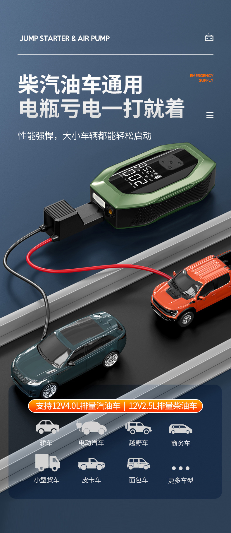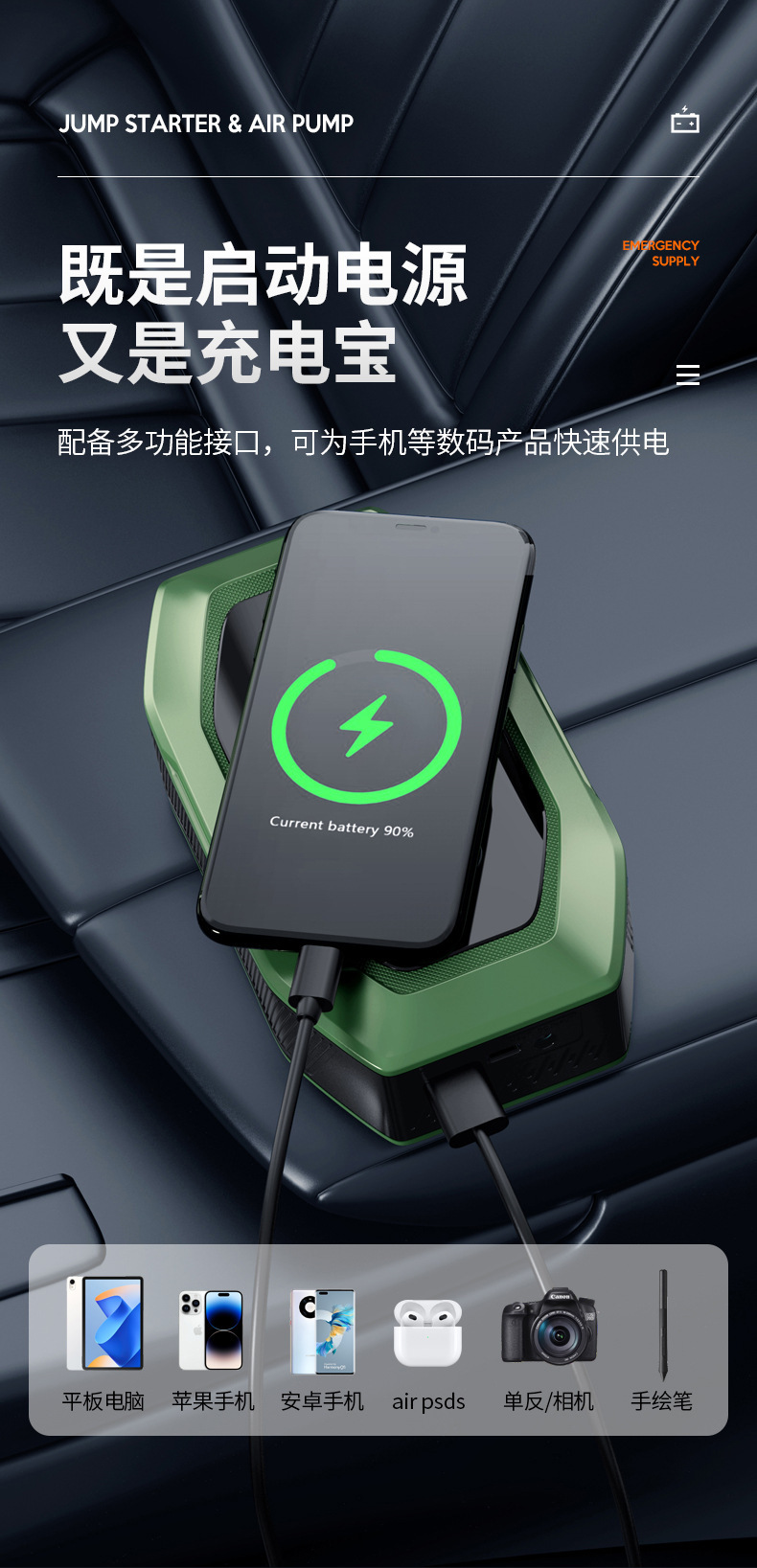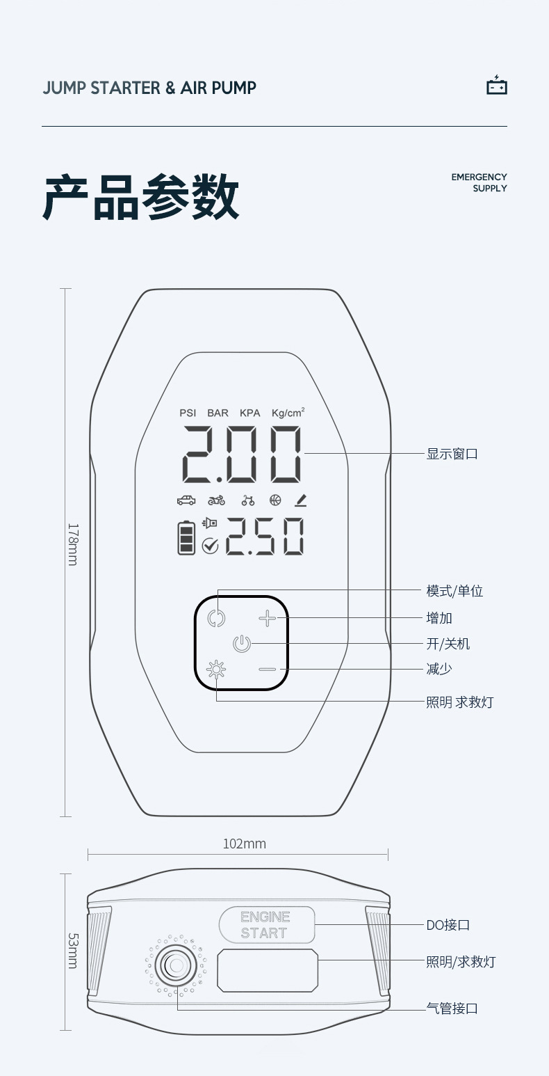 자동차 비상 시동 전원 공급 장치, 에어 펌프 일체형 기계, 파워 업 보물, 배터리 비상 대기 자동차 충전 보물