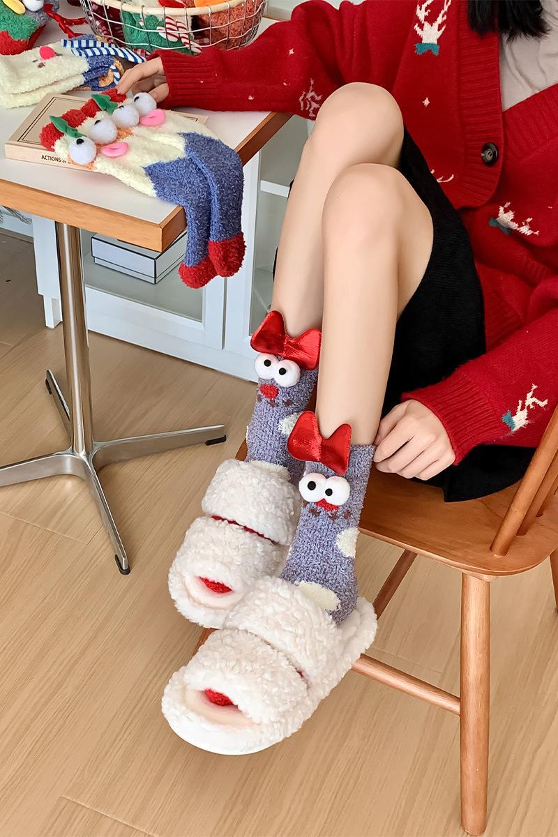 달콤한 나나 가을과 겨울 새로운 산호 양털 크리스마스 양말 홈 플로어 양말 수면 양말 튜브 양말 여성 양말스토어 가기