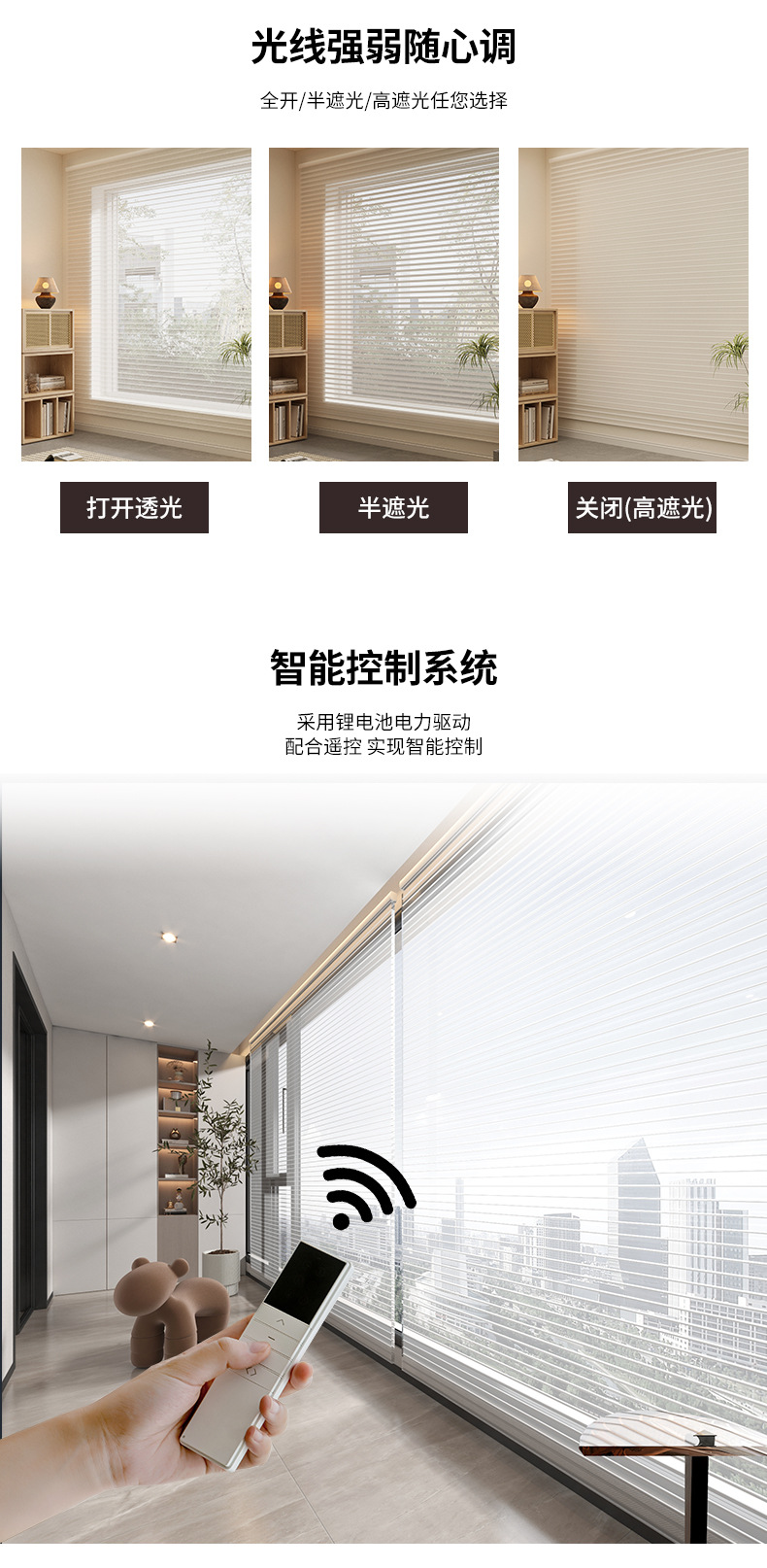 1、日常使用场景,当发现帘子运行速度较慢时建议补电,避免过度放电,维持电池活性。