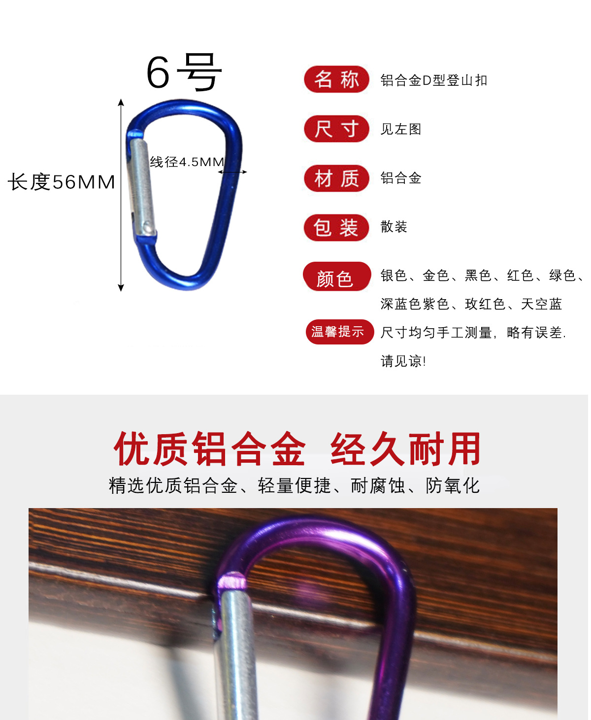 6호 D형 카라비너 ​​알루미늄 합금 카라비너 ​​물병 걸이 블루투스 헤드셋 커버 걸이 버클