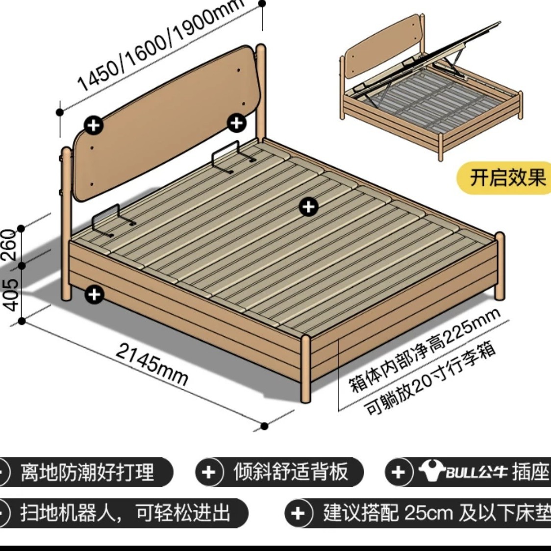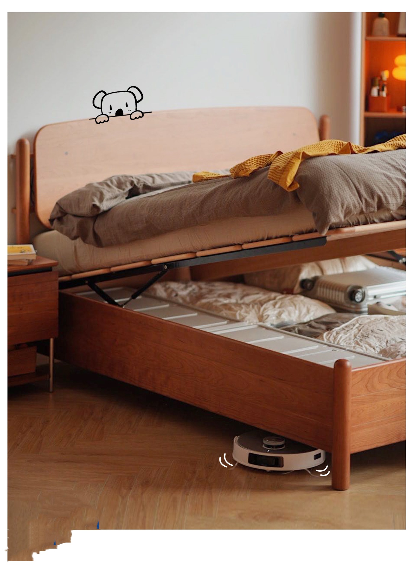 코알라 박스 베드 오프 그라운드 디자인 통기성 방습 원목 수납 더블 침대