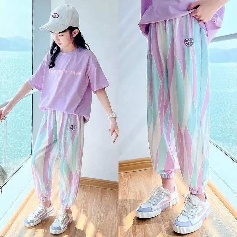 여자 모기 방지 바지 여름 얇은 어린이 캐주얼 스포츠 바지 얼음 실크 2023 새로운 여자 큰 어린이 여름 바지스토어 가기