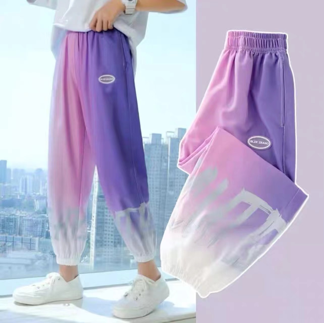 여자 모기 방지 바지 여름 얇은 어린이 캐주얼 스포츠 바지 얼음 실크 2023 새로운 여자 큰 어린이 여름 바지