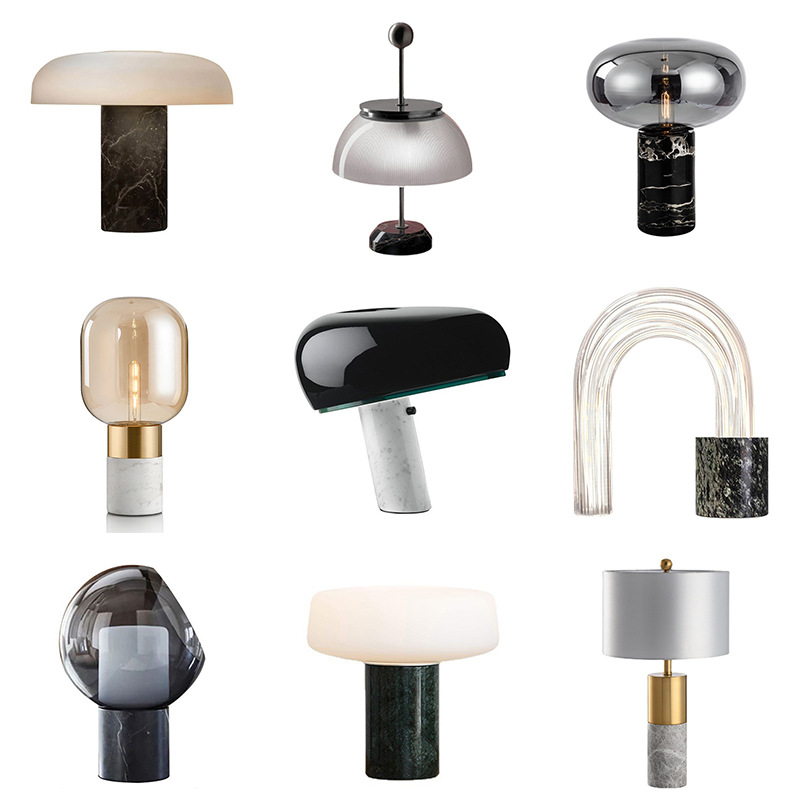 북유럽 대리석 현대 간단한 침대 옆 램프 유리 조명 럭셔리 디자이너 거실 침실 모델 룸 장식 테이블 램프