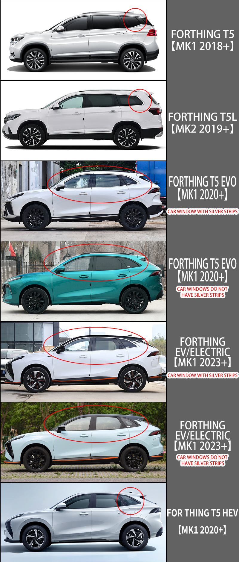 • Fengxing T5 EVO [MK1 2020+] [윈도우 트림 스트립 포함] [PC] 밝은 스트립이 있는 레인 쉴드