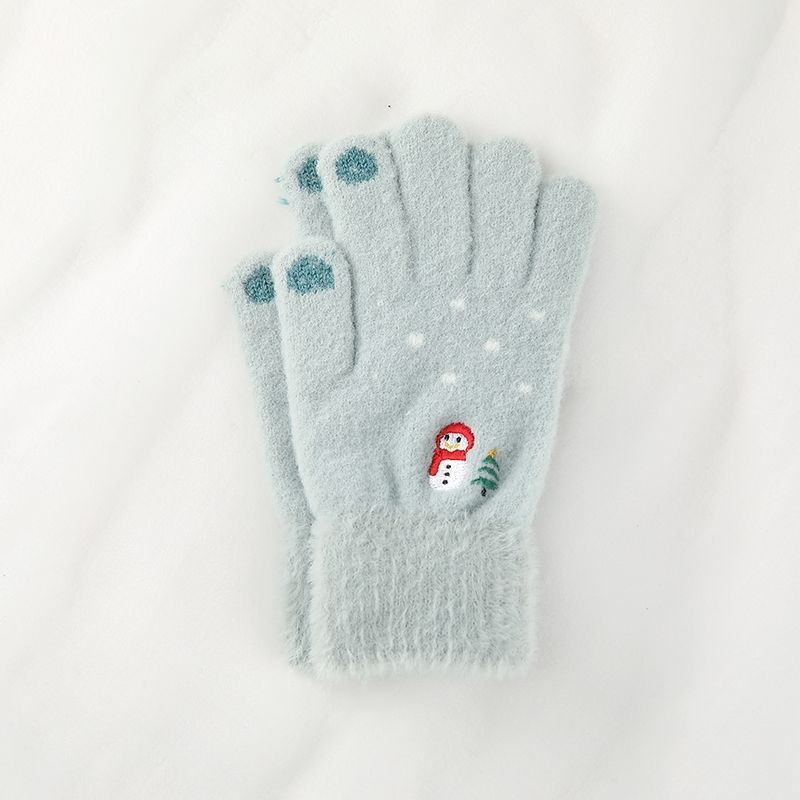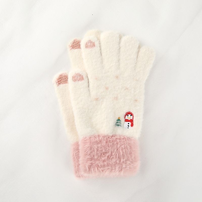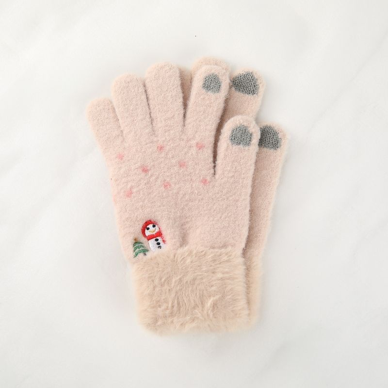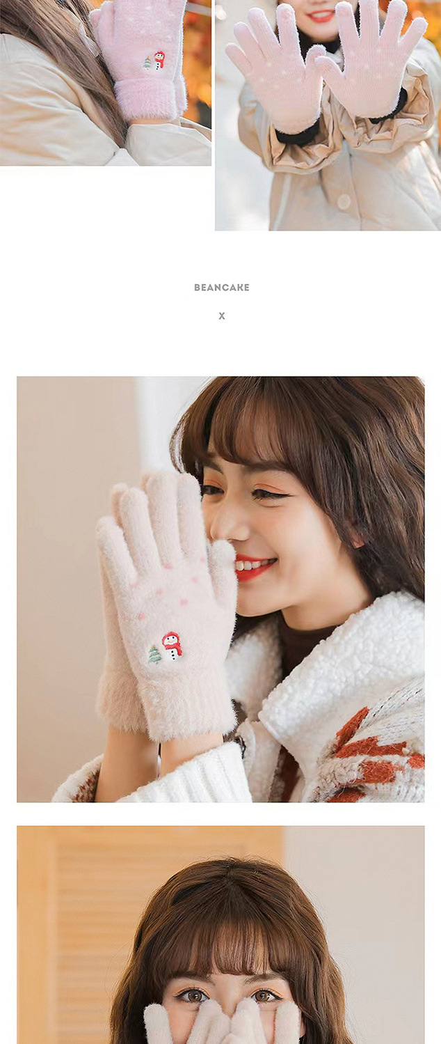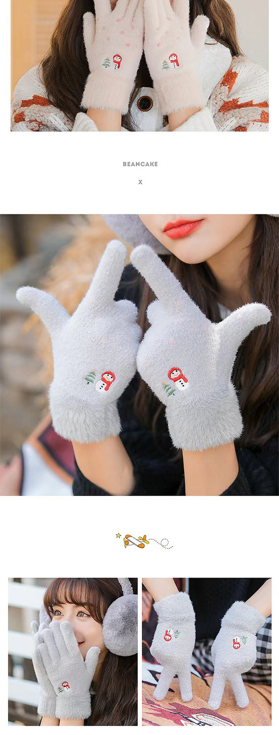 가을과 겨울 눈사람 다섯 손가락 장갑 한국식 학생 쓰기 사무실 승마 터치 스크린 따뜻한 두꺼운 니트 장갑