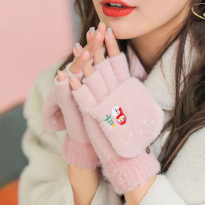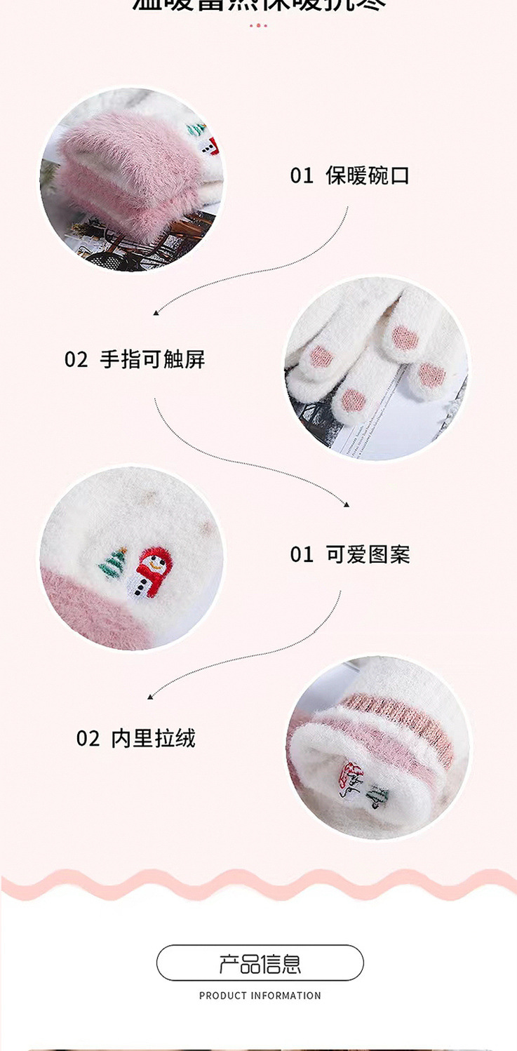 • 플립-숙녀 눈사람 니트 장갑 "핑크 1 쌍]