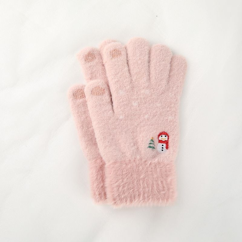 • 숙녀 눈사람 니트 장갑 "핑크 1 쌍]