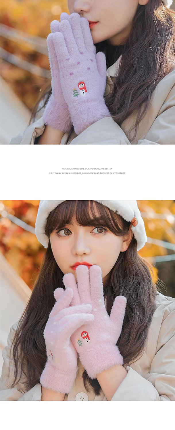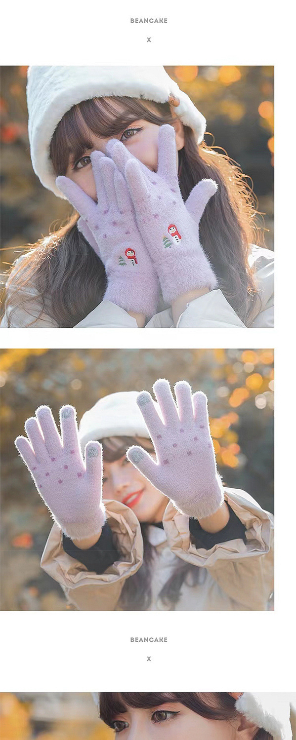 • 숙녀 눈사람 니트 장갑 "보라색 1 쌍]