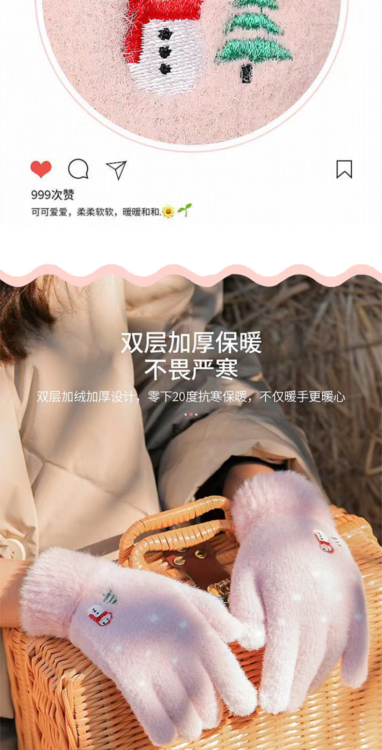 가을과 겨울 눈사람 다섯 손가락 장갑 한국식 학생 쓰기 사무실 승마 터치 스크린 따뜻한 두꺼운 니트 장갑스토어 가기