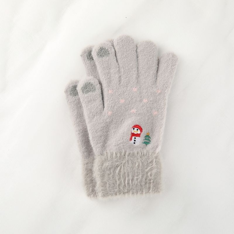 • 숙녀 눈사람 니트 장갑 "회색 1 쌍]