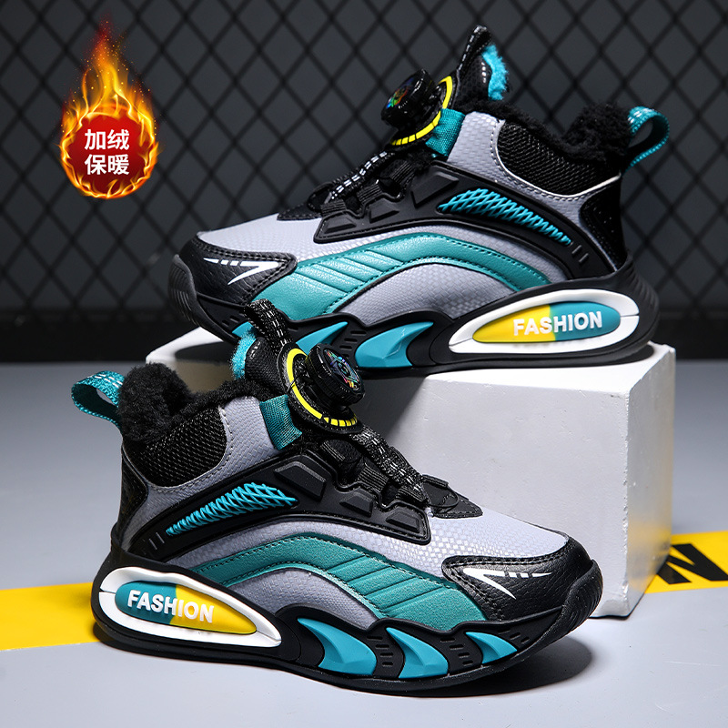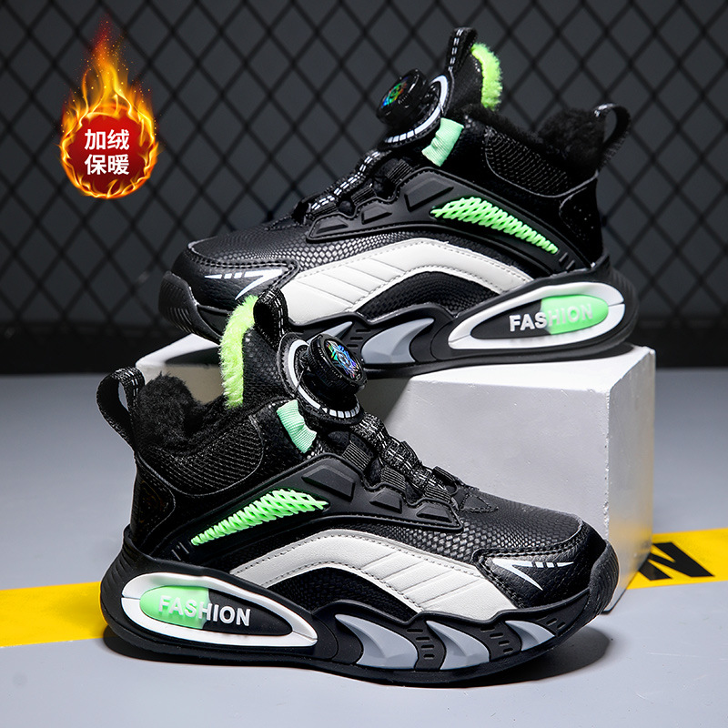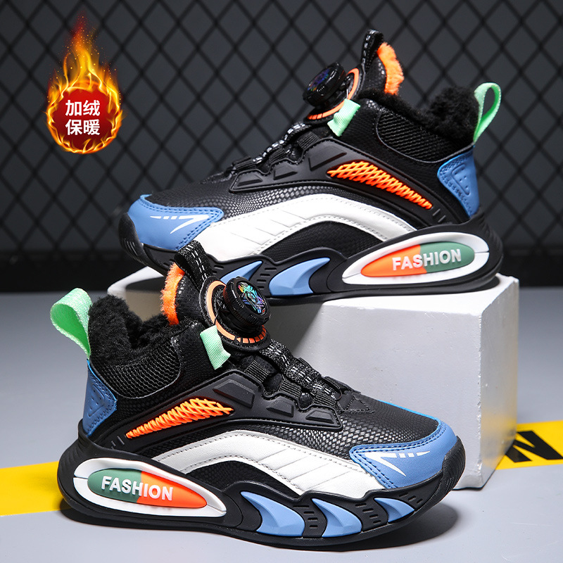 어린이 면 신발 소년 2023 겨울 새로운 기모 토레 신발 회전 버클 소년 큰 면 스포츠 어린이 신발 가을과 겨울