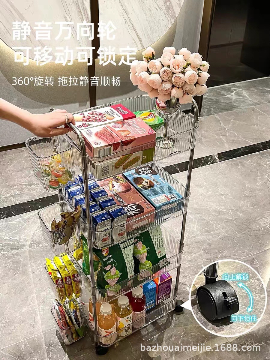 트롤리 보관 랙 가정용 스낵 다층 보관 책장 이동식 주방 아크릴 플라스틱 보관 랙