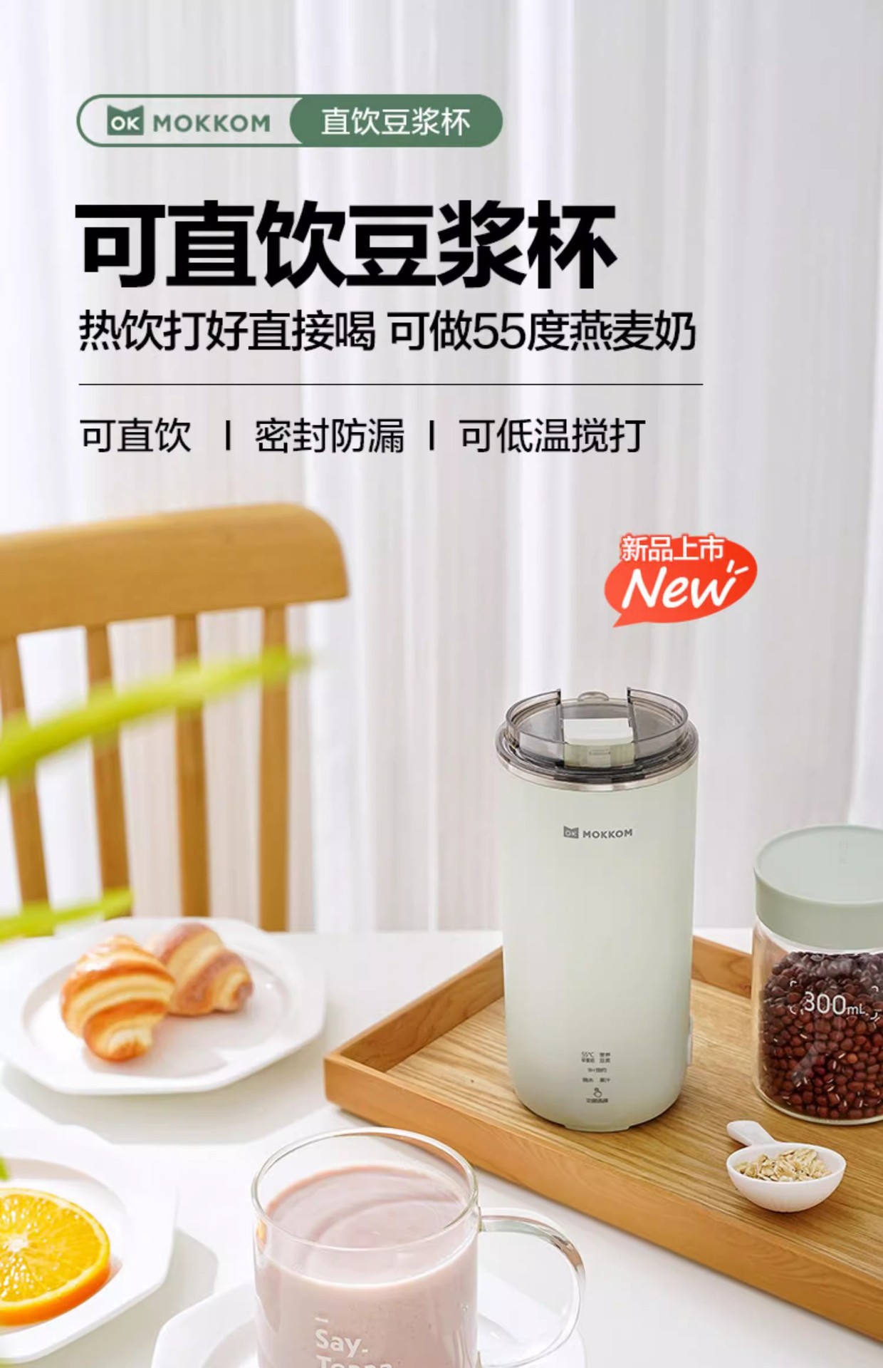 MOKKOM 밀 직접 음료 두유 컵 가정용 자동 미니 두유 기계 1 사람 작은 휴대용스토어 가기