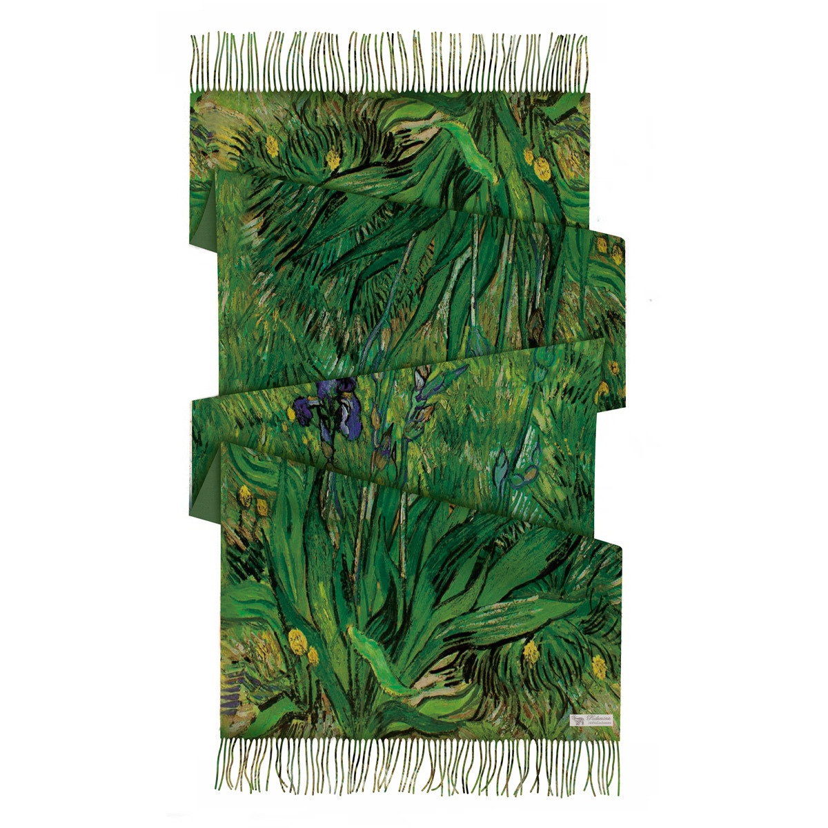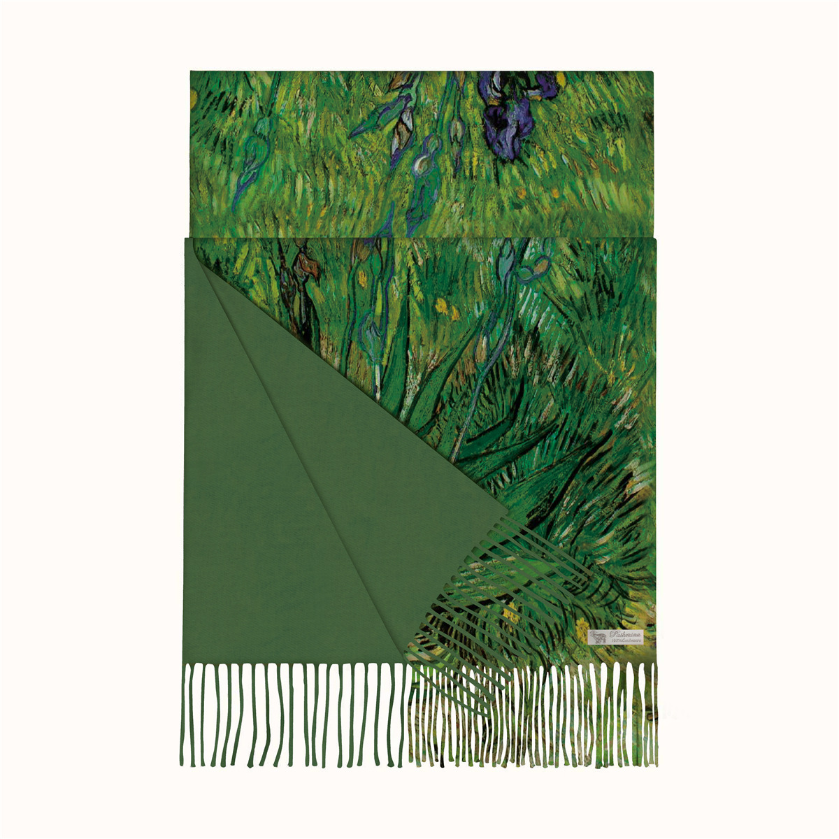 캐시미어 같은 술 새 긴 스카프 반 고흐 유화 녹색 홍채 꽃 여성 스카프 목도리 따뜻한 선물 스카프