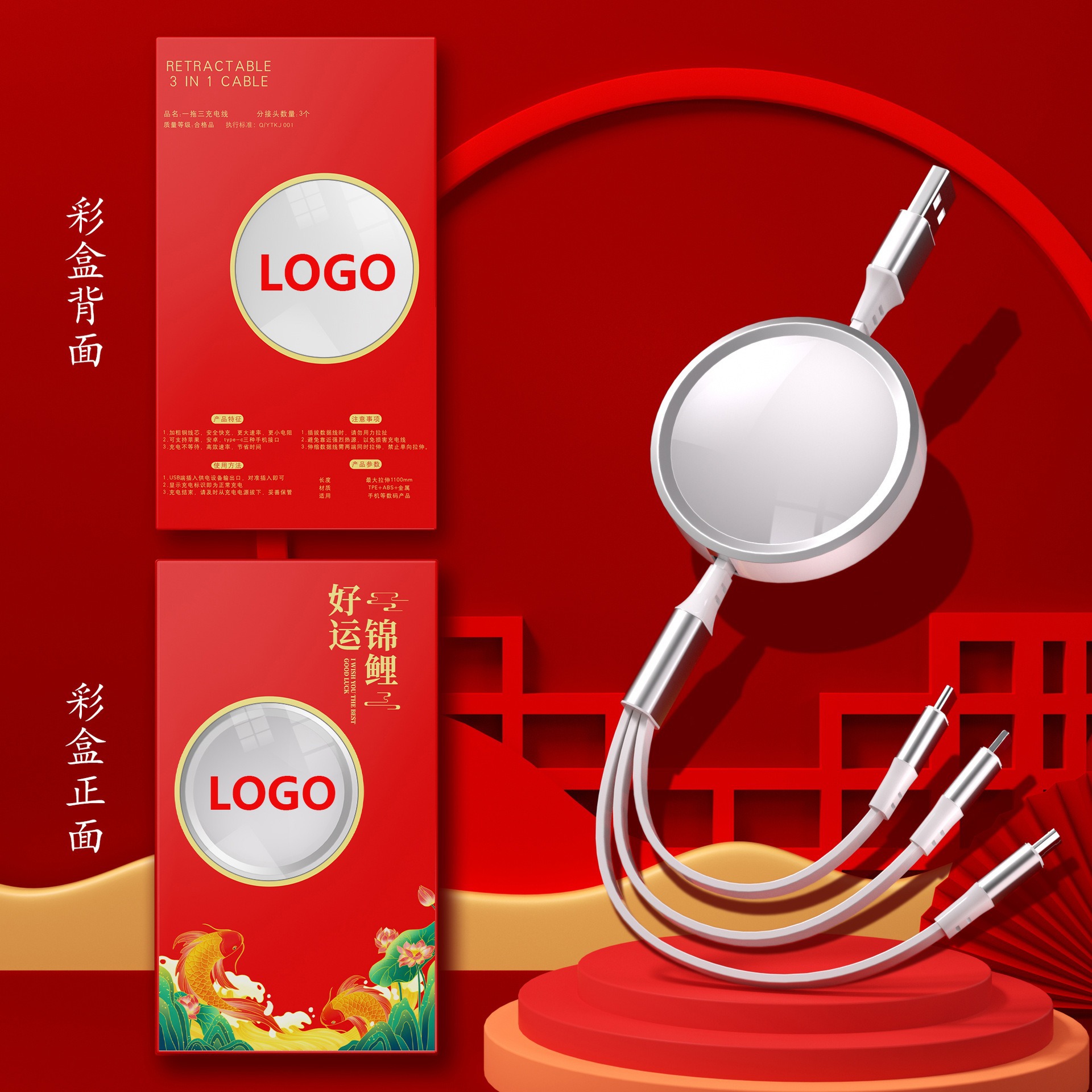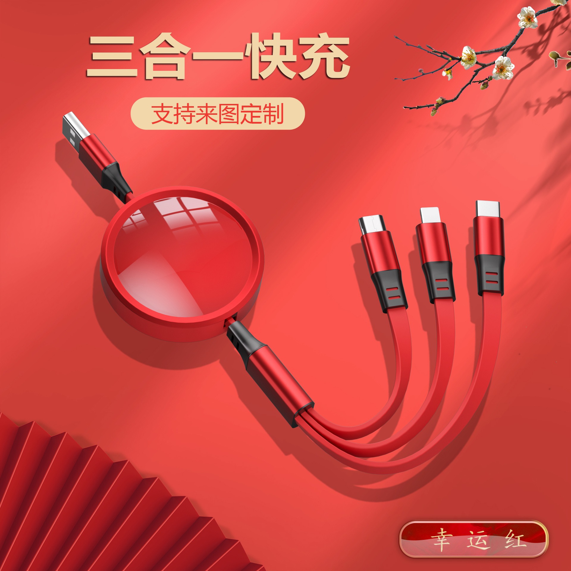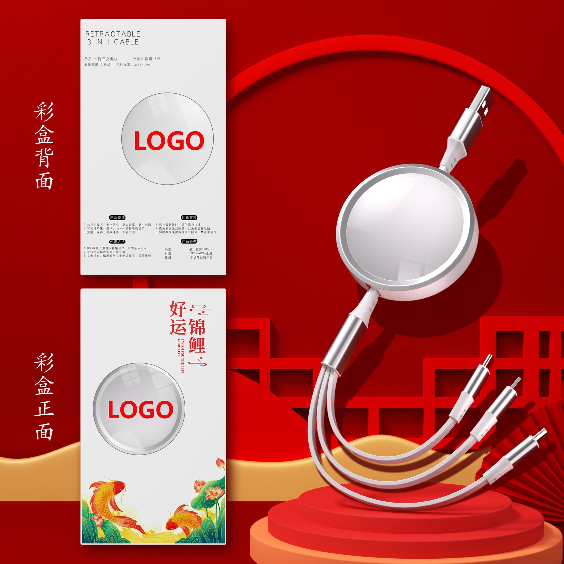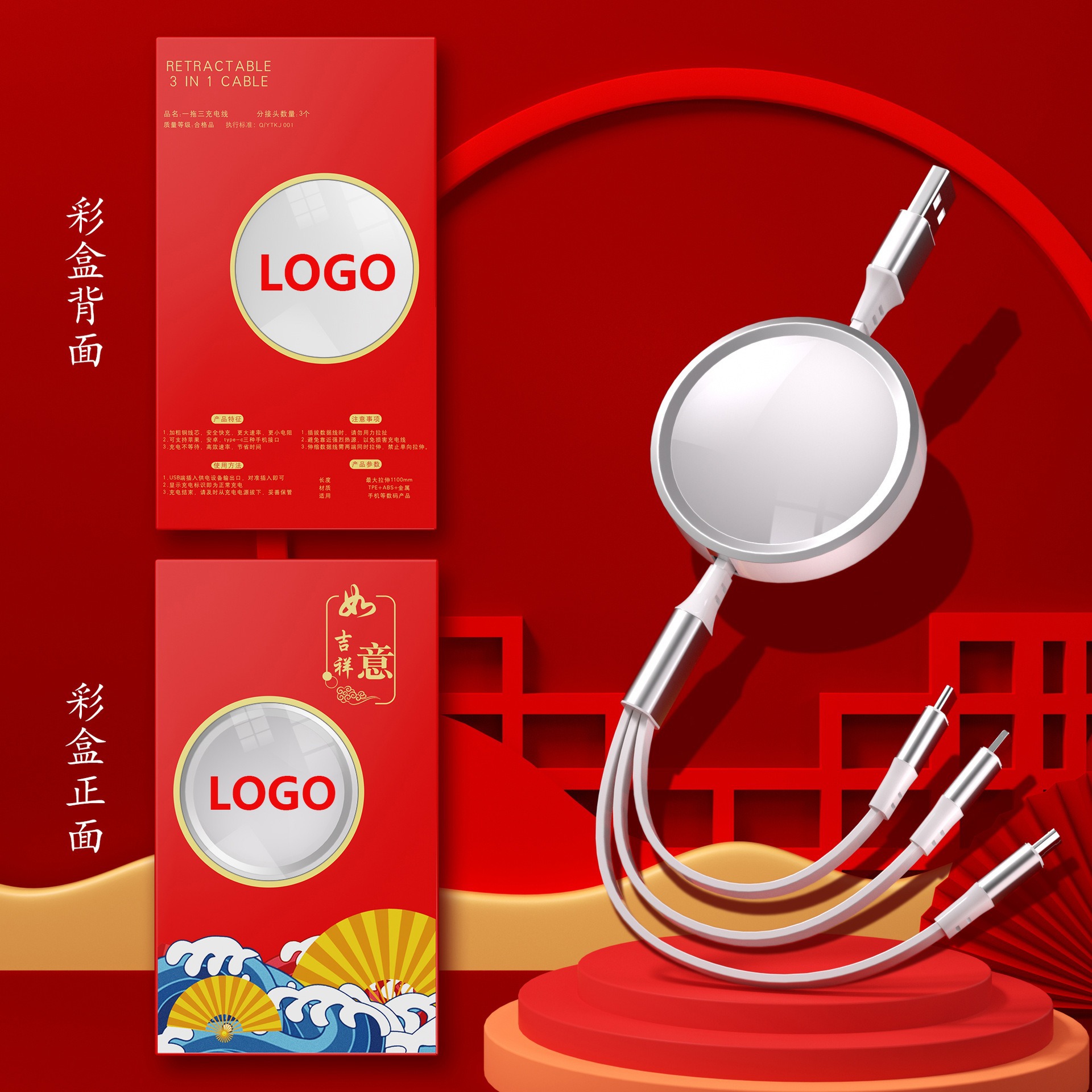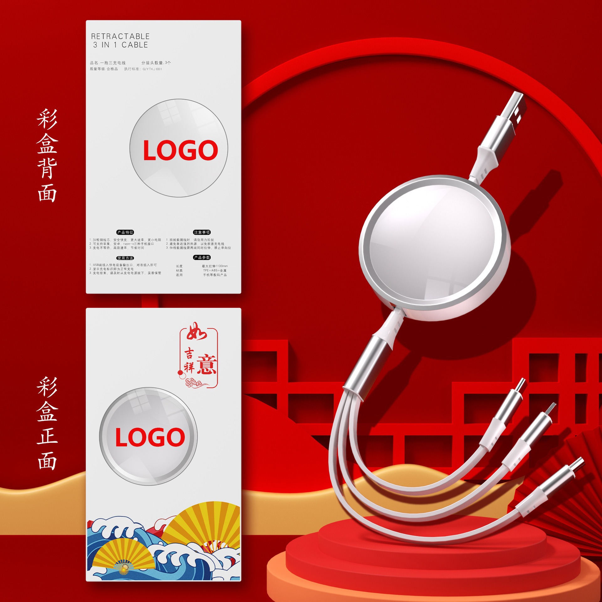 3-in-1 고속 충전 데이터 케이블 세트, 작은 선물, 각인 패턴, 광고 로고, 기념품스토어 가기