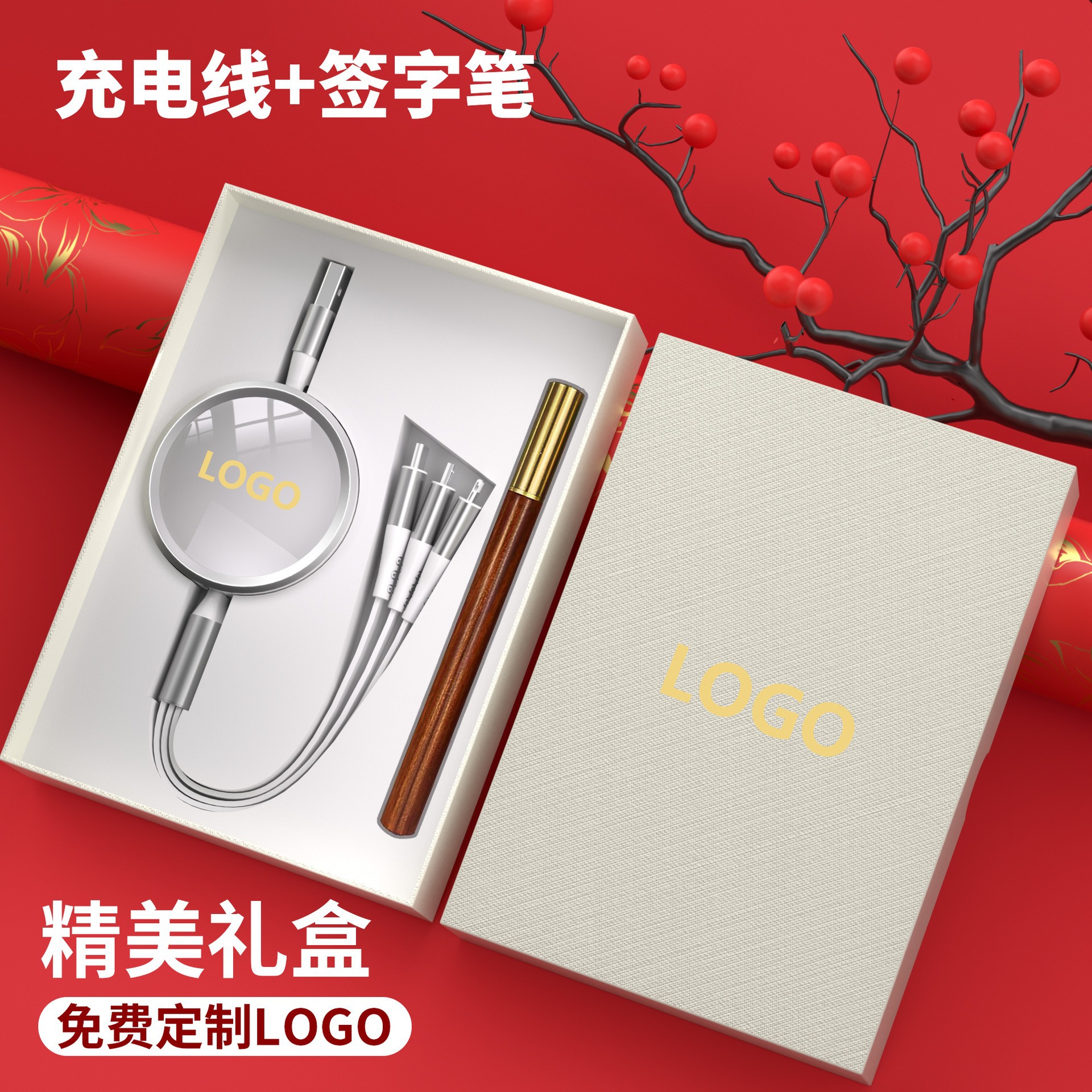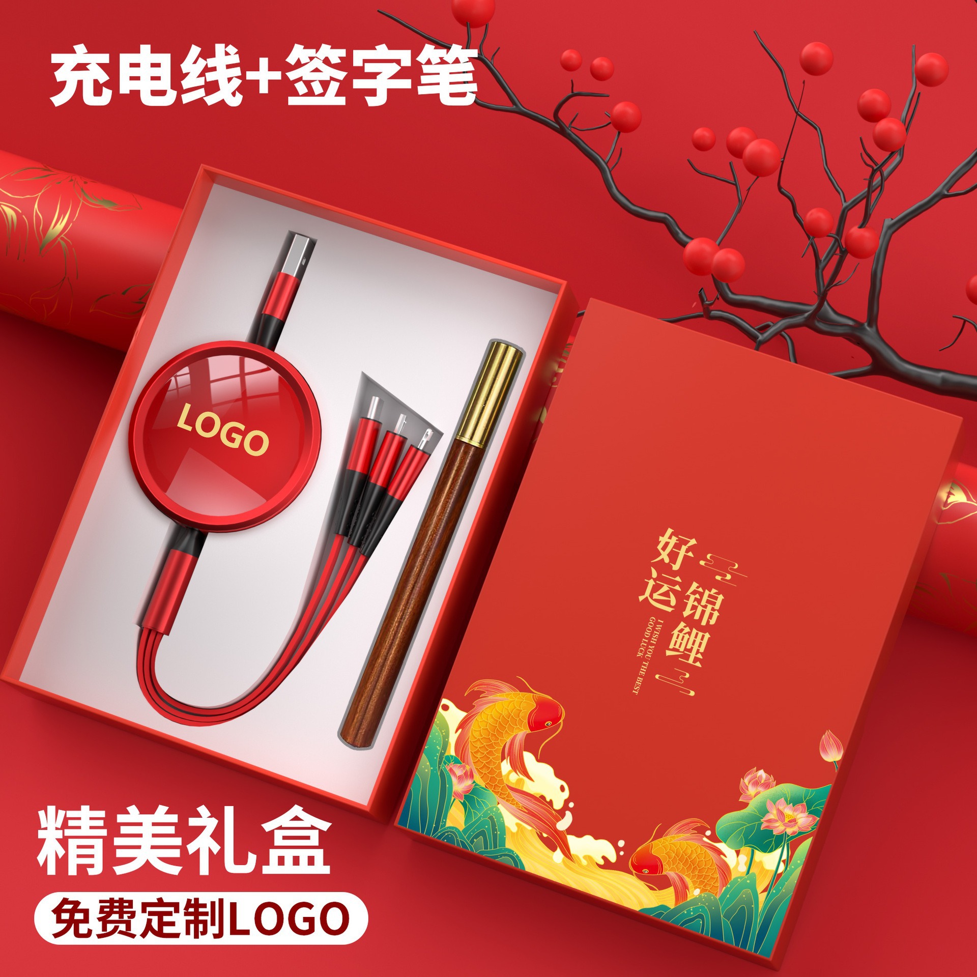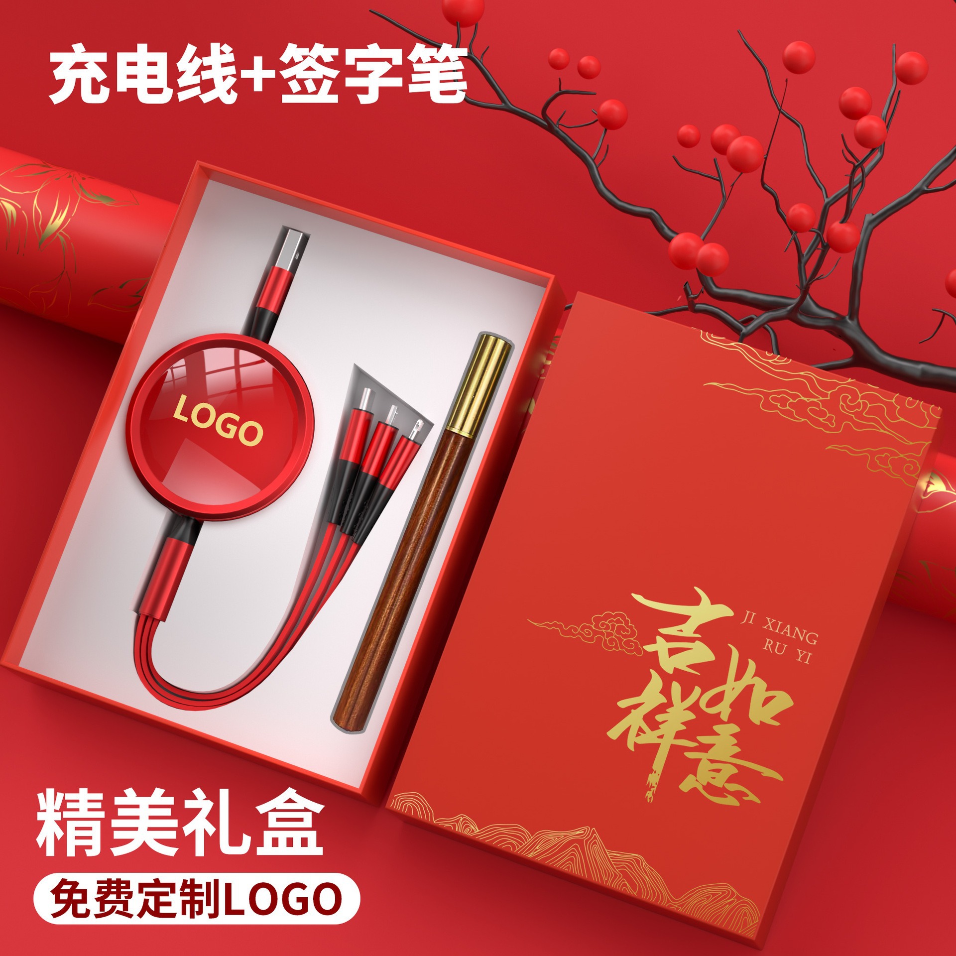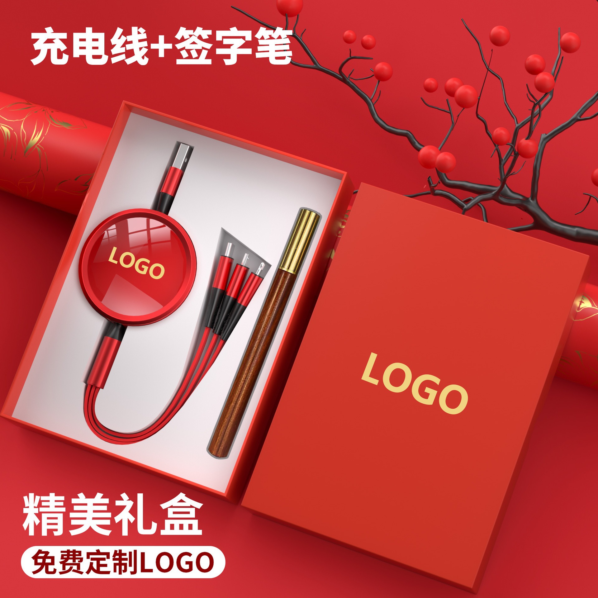 • [빨간색 충전 케이블 + 시그니처 펜] 순수한 빨간색 선물 상자★무료 맞춤형 로고
