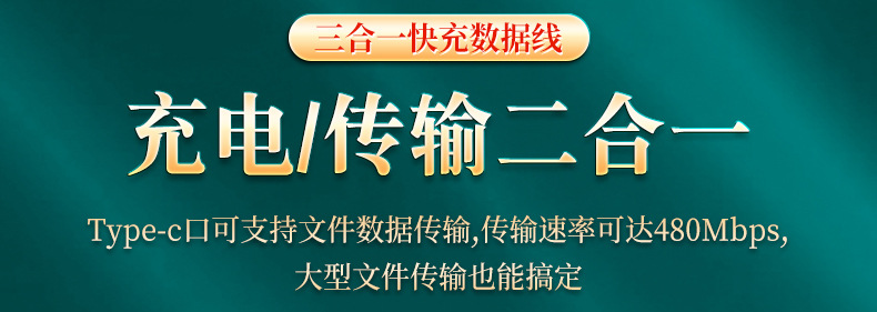 3-in-1 고속 충전 데이터 케이블 세트, 작은 선물, 각인 패턴, 광고 로고, 기념품