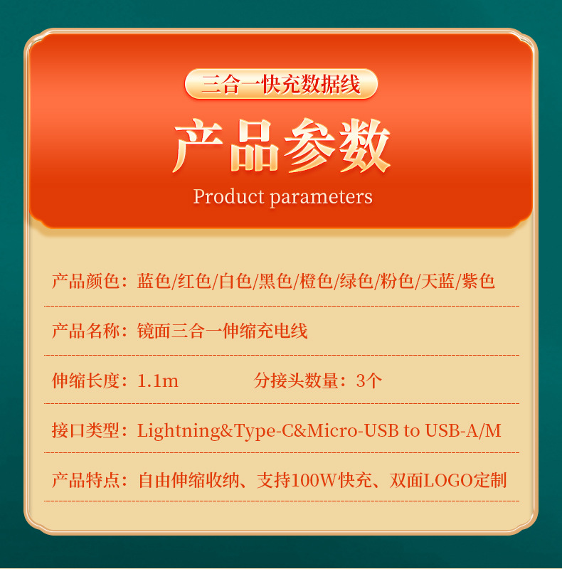 • 거울 스타일 [빨간색★【금사봉복】 C타입 포트 초고속 충전 지원★로고 패턴 인쇄 가능_